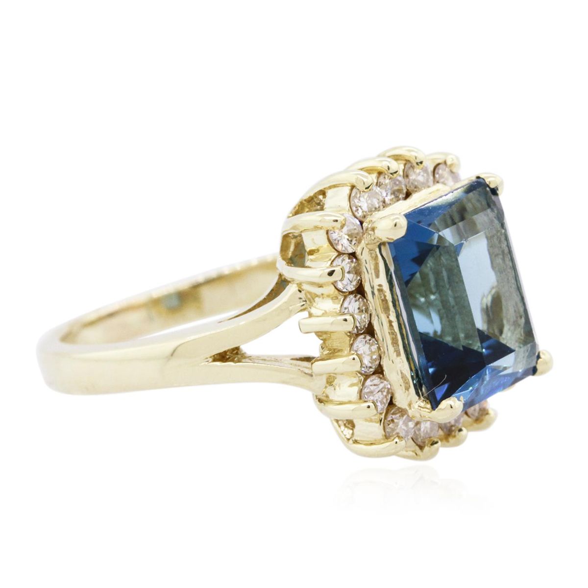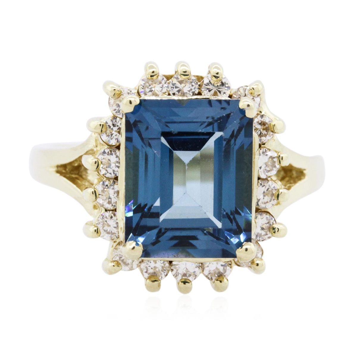 One ring featuring: 14KT yellow gold weighing 6.50 grams containing one blue topaz center stone with a total weight of 3.00ct and round cut diamonds with a total weight of 0.25cts.