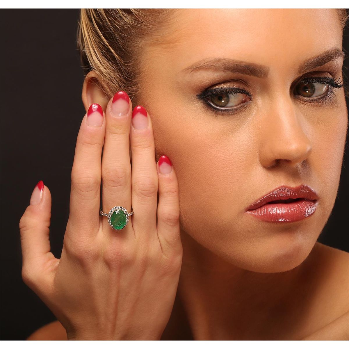 One electronically tested 14KT yellow gold Ladies combination cast & assembled fashion ring with a high polish finish. Condition is new. Identified with markings of "14K". Containing: One prong set oval modified mixed cut natural emerald, measuring 11.90 x 9.00 x 5.00mm, approximate weight of 3.01ct., clarity is heavily included, type III, medium light, moderately strong, very slightly bluish green color, (GIA vslbG 4/4), cut is good. Colored gemstones are presumed to have been subjected to commonly used and possible undetectable color/clarity enhancement processes. Forty-Eight prong set round brilliant cut diamonds, measuring 1.50 - 1.50 x 0.90mm (depth est.) approximate total weight of 48 Stones = 0.59ct. Clarity of SI-2 to I-2, Color of J - K, Cut is Good. Total Weight of Colored Stones 3.01ct. Total Weight of Diamonds 0.59ct. Total Weight of Ring 4.00 grams. GGL Appraised at $8,260.00.