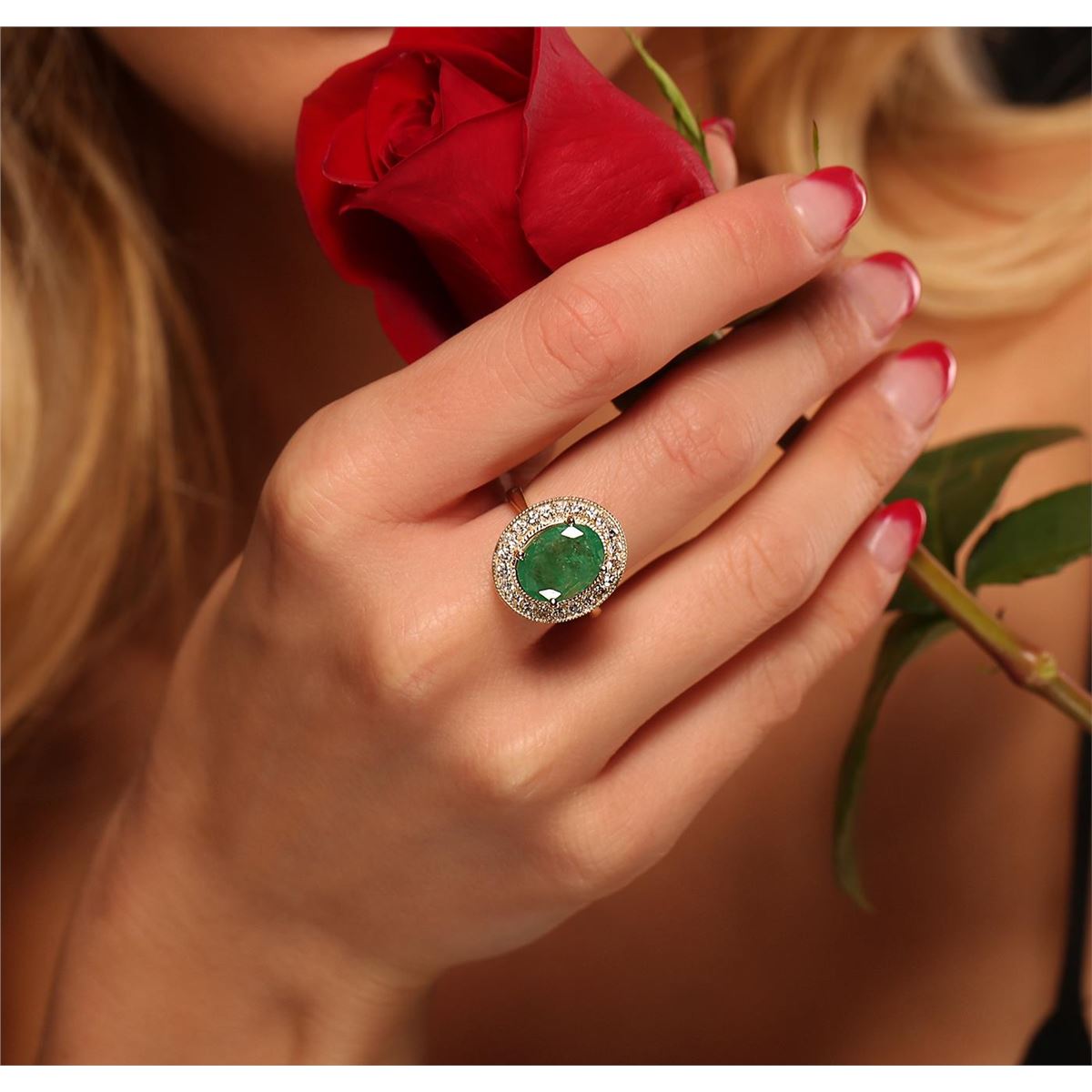 One electronically tested 14KT yellow gold Ladies combination cast & assembled fancy ring with a high polish finish. Condition is new. Identified with markings of "14K". Containing: One prong set oval modified brilliant cut natural emerald, measuring 12.10 x 9.00 x 5.10mm, approximate weight of 3.09ct., clarity is heavily included, type III, medium, very slightly grayish, green color, (GIA G 5/3), cut is good. Colored gemstones are presumed to have been subjected to commonly used and possible undetectable color/clarity enhancement processes. Twenty-Two bead set round brilliant cut diamonds, measuring 2.00 - 2.00 x 1.32mm (depth est.) approximate total weight of 22 Stones = 0.71ct. Clarity of SI-1 to SI-2, Color of J - L, Cut is Good. Total Weight of Colored Stones 3.09ct. Total Weight of Diamonds 0.71ct. Total Weight of Ring 6.50 grams. GGL Appraised at $9,625.00.