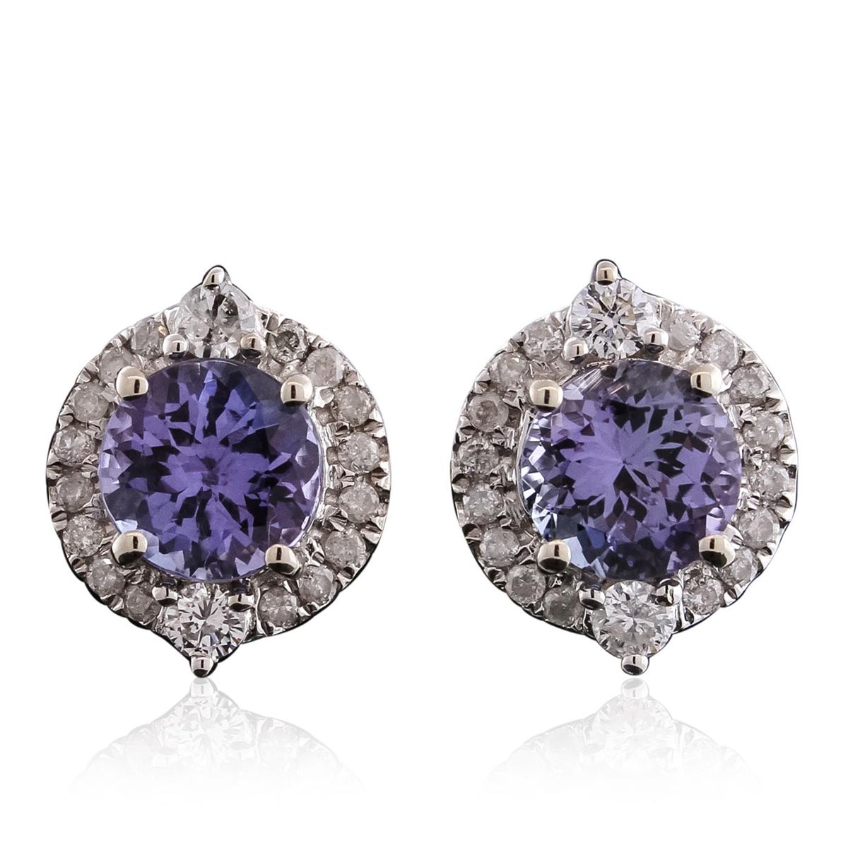 One pair electronically tested 14KT yellow gold ladies cast & assembled tanzanite and diamond earrings with standard backs. Bright polish finish. Trademark is Orianne. Identified with markings of "14K". Condition is new, good workmanship. Containing: Two prong set round brilliant cut natural tanzanites, measuring 7.00 - 7.05 x 4.57 mm, 8% bulge factor, approximate total weight of 3.24ct., clarity is eye clean, type I, medium dark, slightly grayish, bluish violet color, (GIA bV 6/2), cut is good. Transmitting light with no distortion, transparent. Color grade is an average for the pair. Graded in the setting. Tanzanite is a very rare gemstone that is only found in the country of Tanzania. Originally discovered in 1967. Tiffany & Company, named the stone Tanzanite. It is found in the Usumburu Mountains that border the Umba Valley of northern Tanzania. Tanzanite occurs in gray, brown, violet, blue, reddish-purple, & green. The gem is interesting because of its exceptional pleochroism. Rotated in different directions a tanzanite will exhibit multiple changes of color. Tanzanite has a low tolerance to ultrasonic cleaning, and should not be cleaned using this method. Four prong set round brilliant cut diamonds, measuring 2.60 - 2.50 x 1.53mm (depth est.) approximate total weight of 4 Stones = 0.31ct. Graded in the setting. Clarity: I-1 to I-2. Color: H - I Twenty-Eight prong set round brilliant cut diamonds, measuring 1.50 - 1.40 x 0.87mm (depth est.) approximate total weight of 28 Stones = 0.41ct. Graded in the setting. Clarity: I-1 to I-3. Color: H - J. Total Weight of Colored Stones 3.24ct. Total Weight of Diamonds 0.72ct. Total Weight of Earrings 4.03gm. AIG Appraised at $7,055.00.