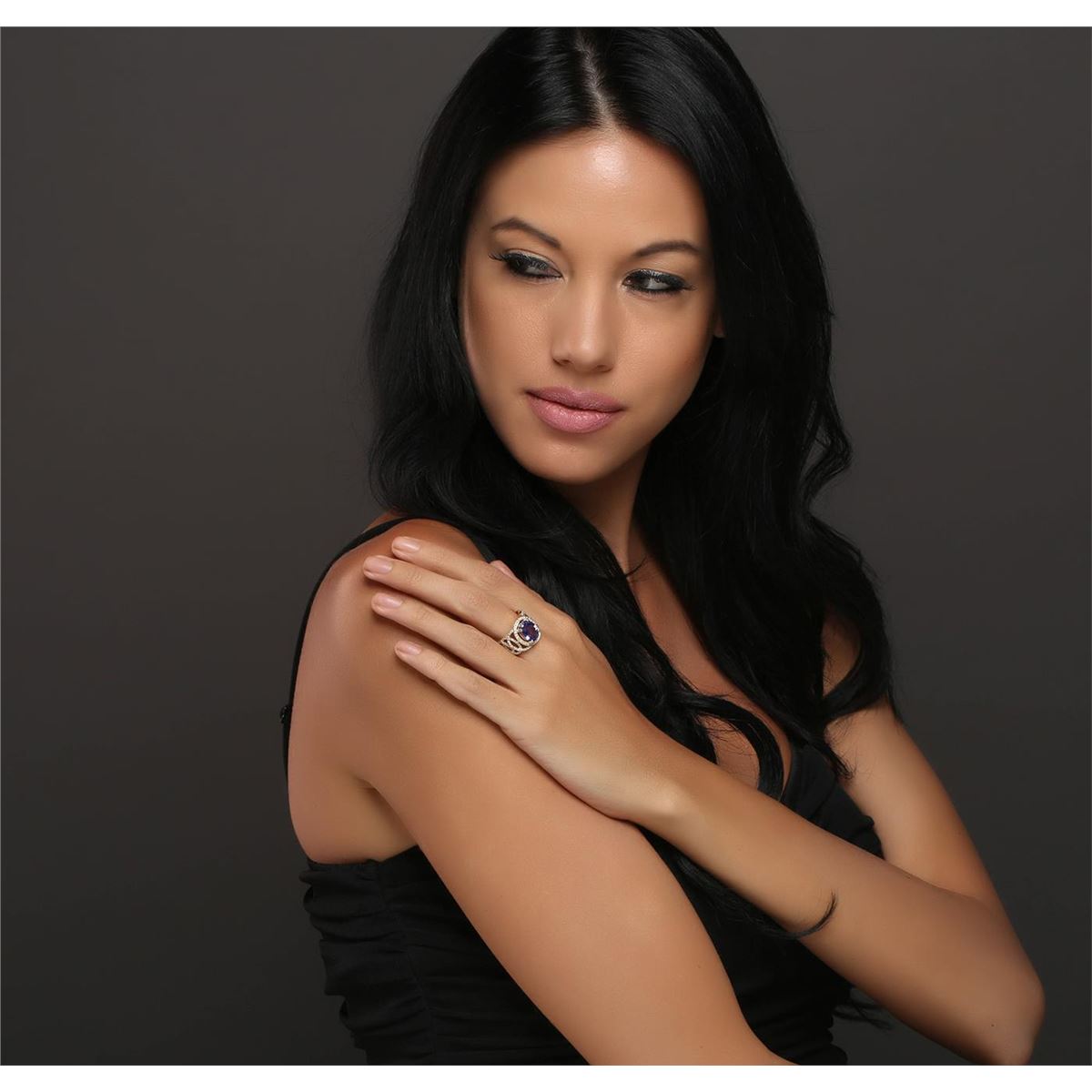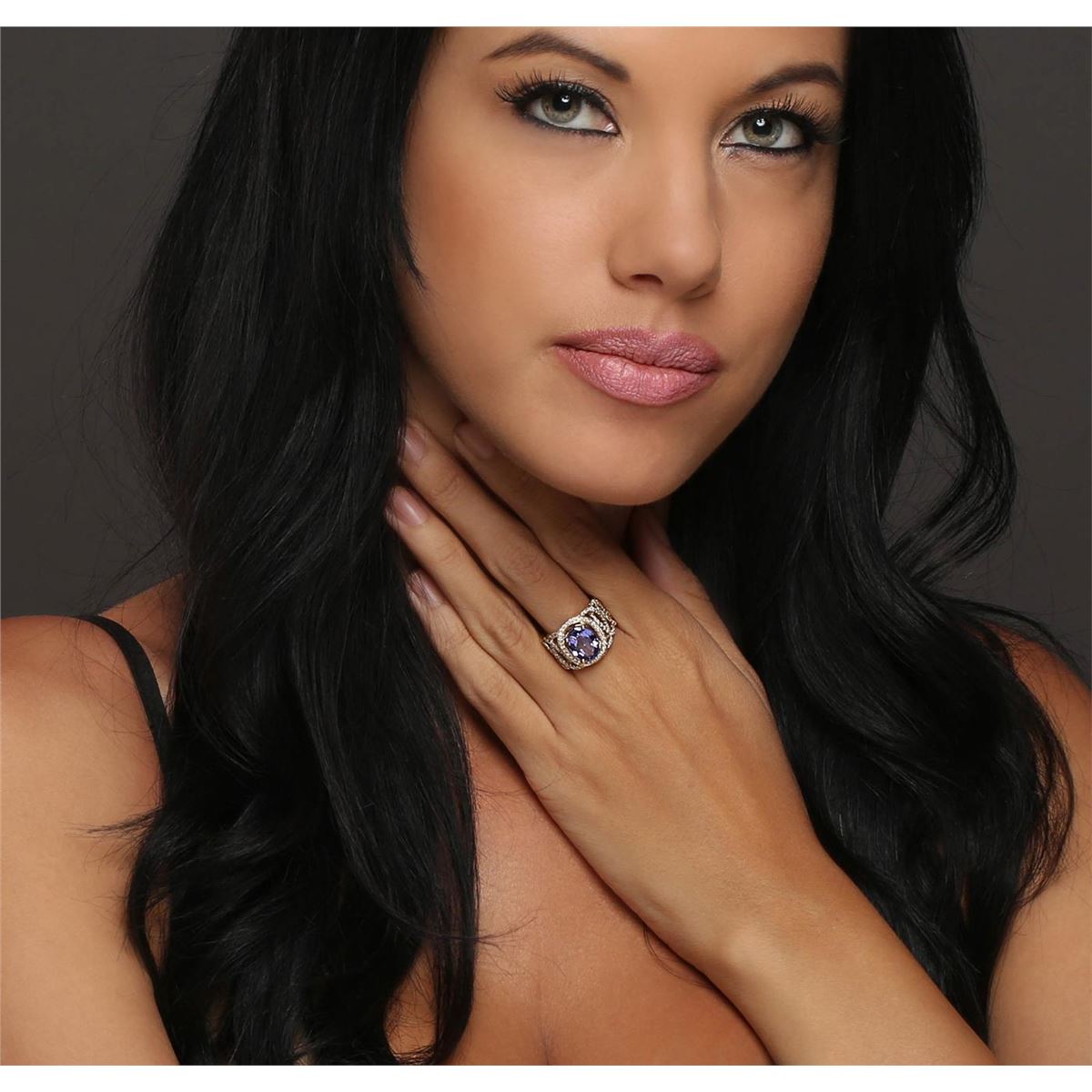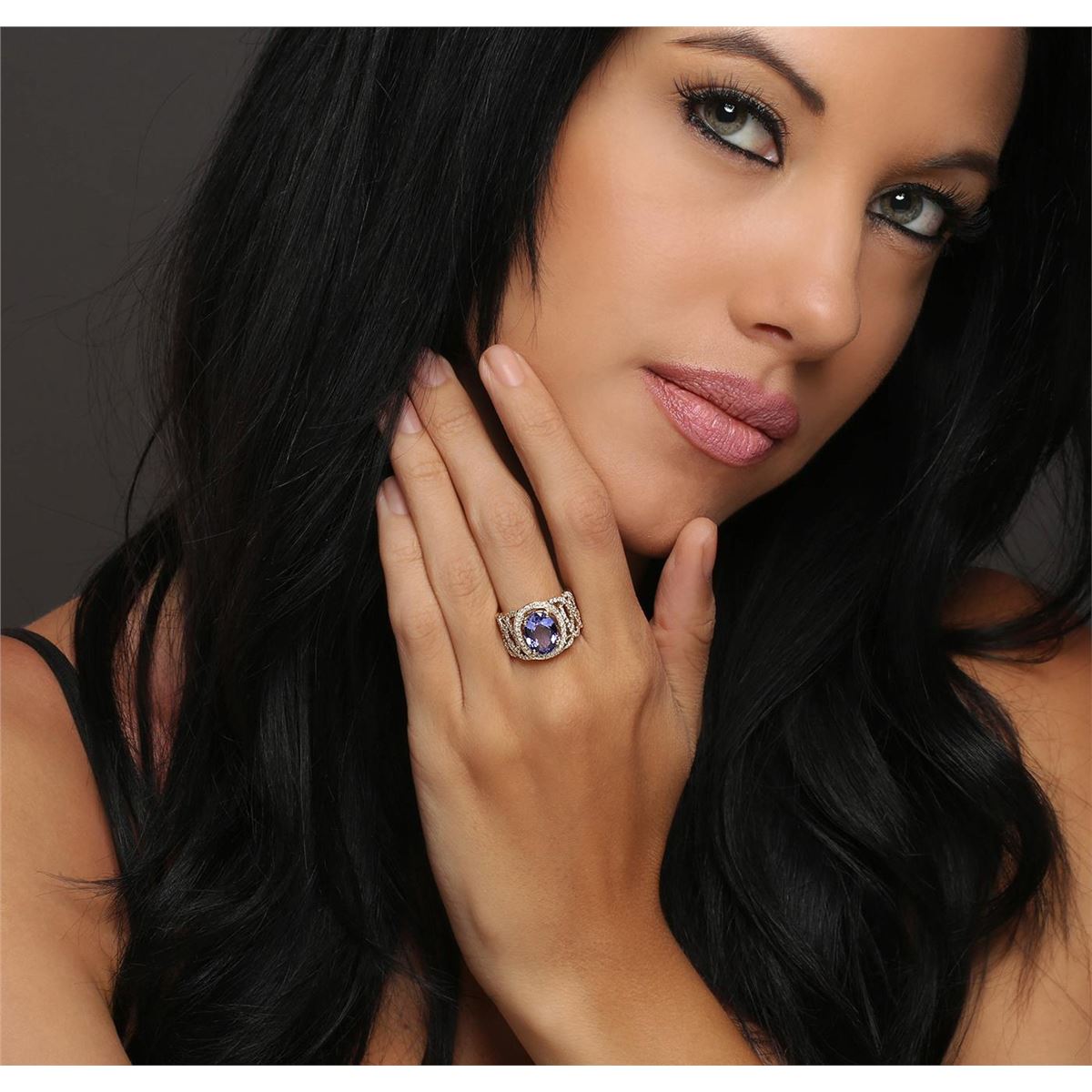 One electronically tested 14KT yellow gold ladies combination cast & assembled ring with a bright polish finish. Identified with markings of "14K". Condition is new. Containing: One prong set oval modified brilliant cut natural tanzanite, measuring 11.00 x 8.20 x 5.33mm, approximate weight of 3.29ct., clarity is eye clean, type I, medium, moderately strong, bluish violet color, (GIA bV 5/4), cut is very good. One Hundred Eighteen prong set round brilliant cut diamonds, measuring 1.10 - 1.10 x 0.66mm (depth est.) approximate total weight of 118 Stones = 0.57ct. Clarity: I-1 to I-2. Color: J - K, Cut is Good. Colored gemstones are presumed to have been subjected to commonly used enhancement processes. All diamonds and colored gemstones are graded in the mounting, unless otherwise stated. Total Weight of Colored Stones 3.29ct. Total Weight of Diamonds 0.57ct. Total Weight of Ring 8.10 grams. GGL Appraised at $8,025.00.