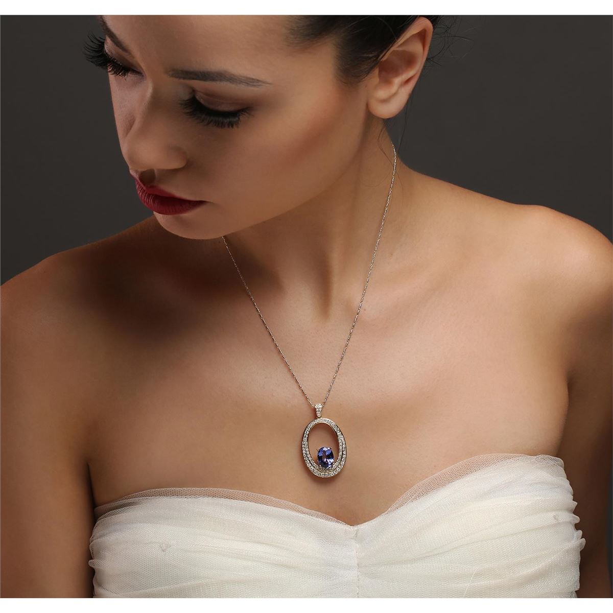 One electronically tested 14KT yellow gold Ladies combination cast & assembled pendant & chain 17.0" long, medium fancy cable link with a lobster claw clasp with a bright polish finish. Condition is new. Identified with markings of "14K". Containing: One prong set oval modified brilliant cut natural tanzanite, measuring 11.72 x 9.05 x 5.30mm, approximate weight of 3.83ct., clarity is eye clean, type I, medium light, moderately strong, violet color, (GIA V 4/4), cut is very good. Colored gemstones are presumed to have been subjected to commonly used color/clarity enhancement processes. Seventy-Three prong set round brilliant cut diamonds, measuring 1.70 - 1.30 x 0.90mm (depth est.) approximate. Total Weight of 73 Stones = 1.01ct. Clarity: I-1 to I-3. Color: I - J, Cut is Good. Total Weight of Colored Stones 3.83ct. Total Weight of Diamonds 1.01ct. Total Weight of Pendant & Chain 10.60 grams. GGL Appraised at $10,285.00.
