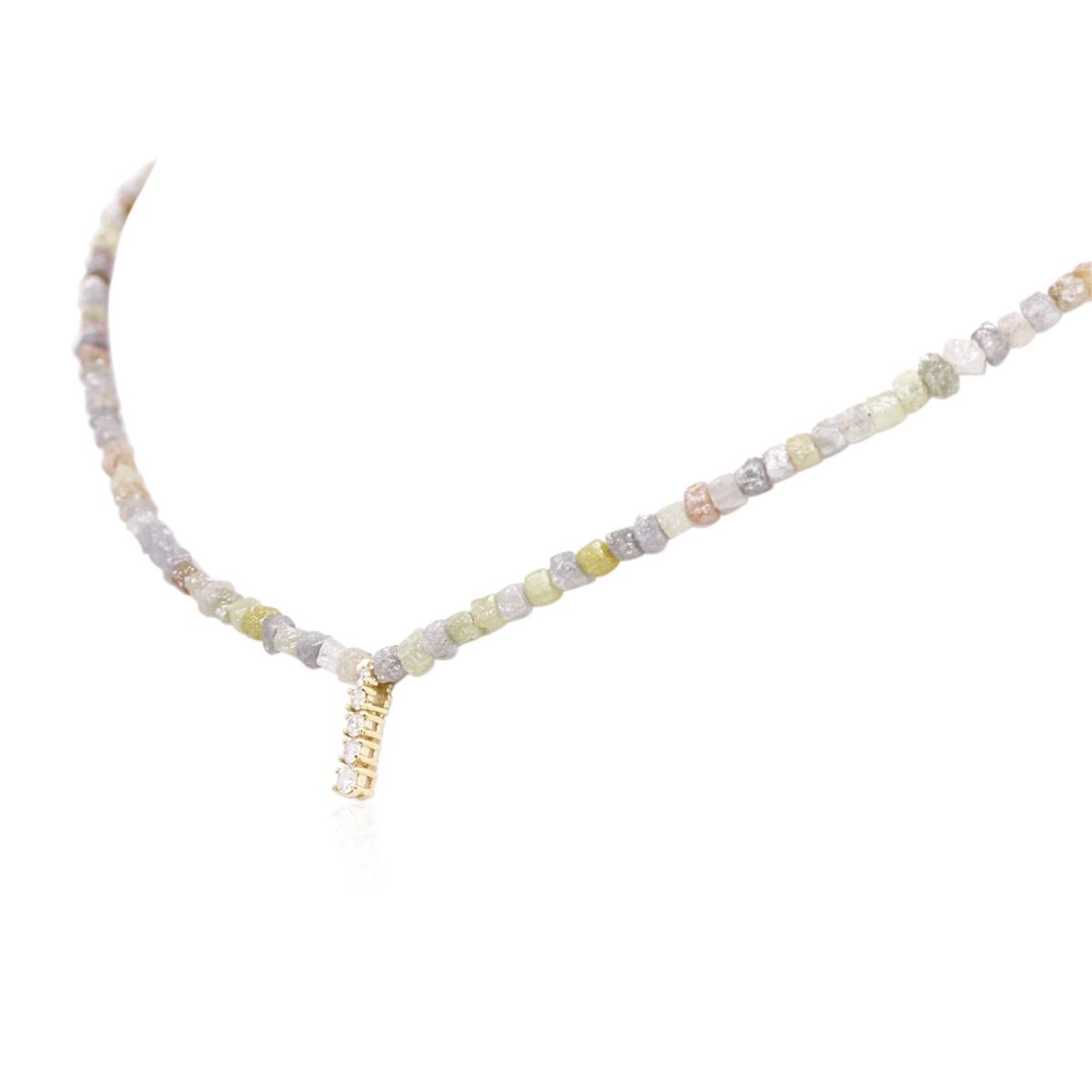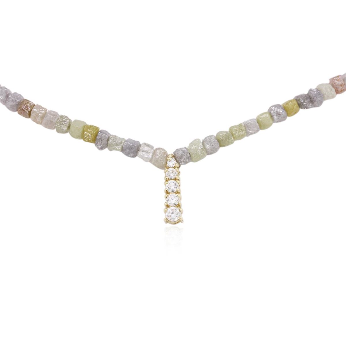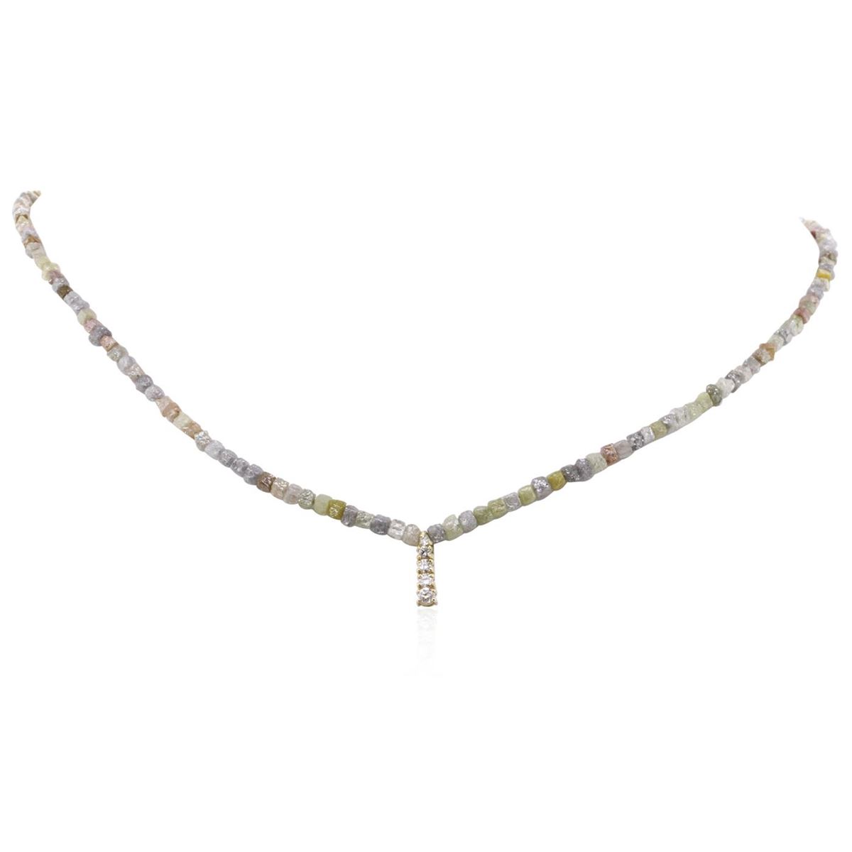 One necklace featuring: 14KT yellow gold weighing 7.70 grams containing rough diamonds with a total weight of 32.94cts and a 1-row charm containing prong set round cut diamonds with a total weight of 0.21cts.