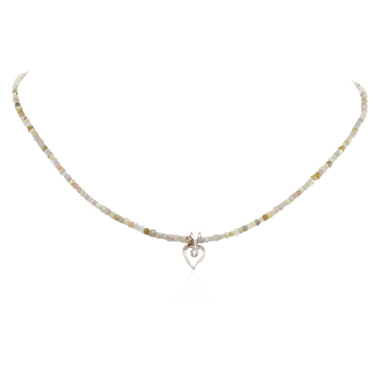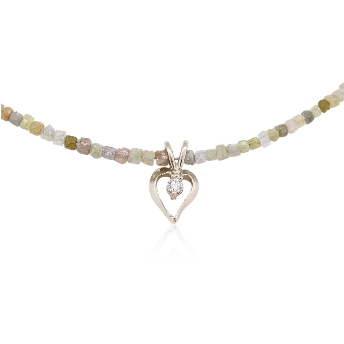 One necklace featuring: 14KT yellow gold weighing 5.60 grams containing rough diamonds with a total weight of 32.99cts and a heart shaped charm containing one prong set round cut diamond with a total weight of 0.04cts.