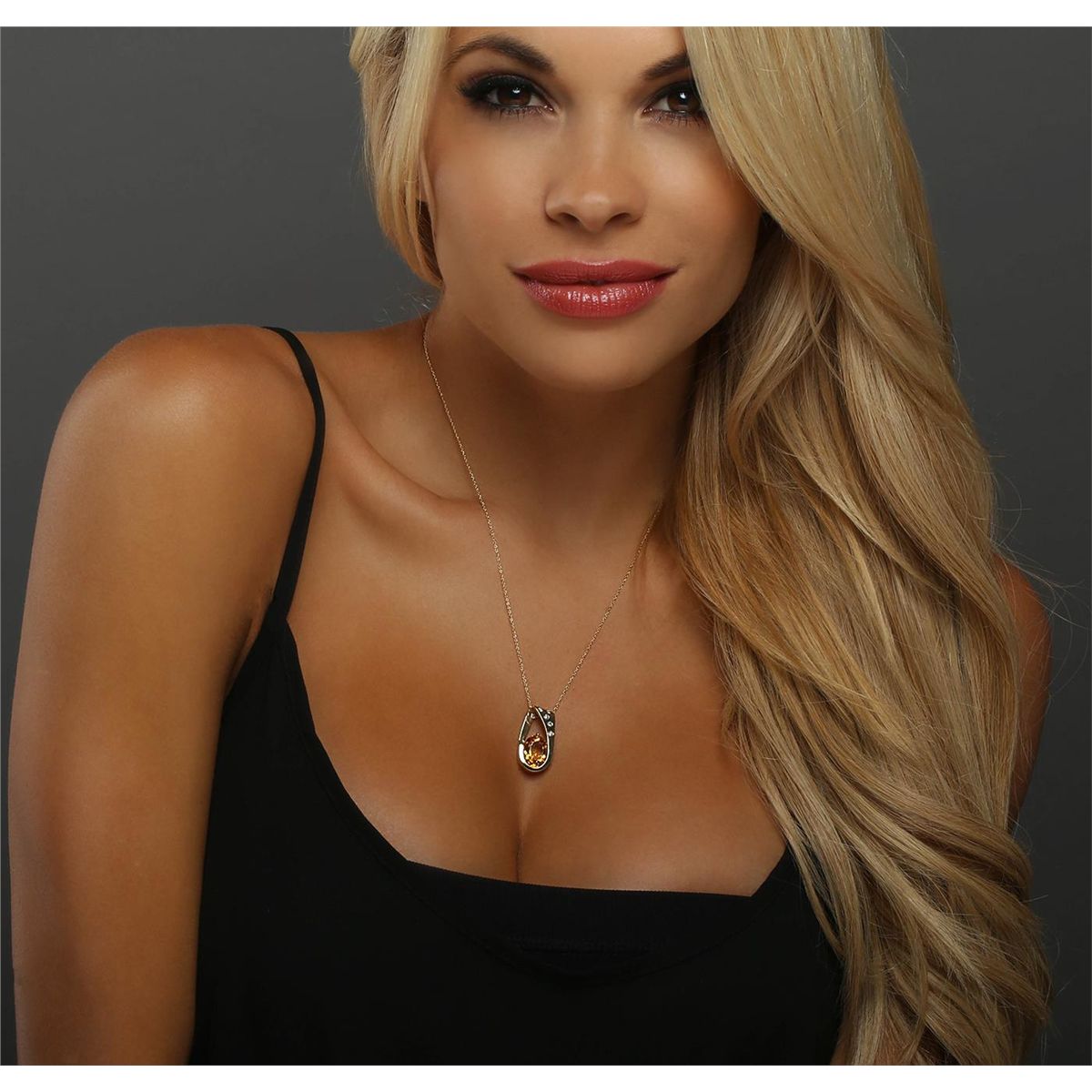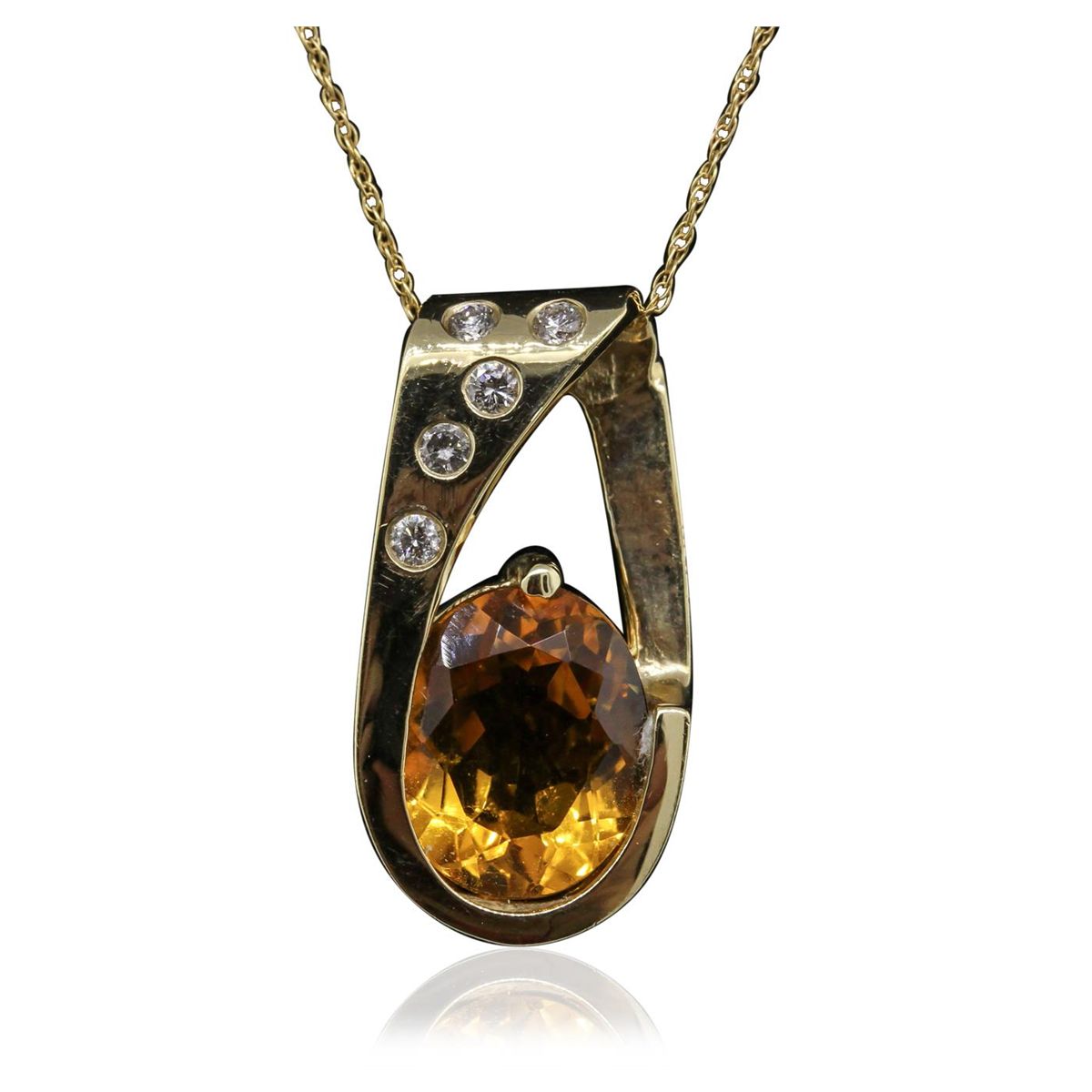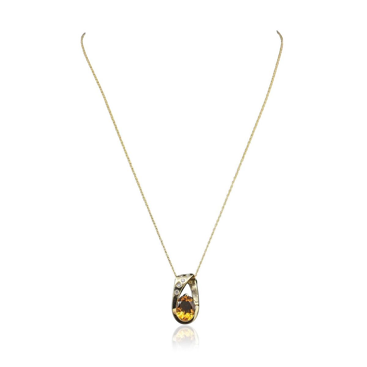 One Pendant featuring: 5.60 grams of 14KT Yellow Gold, Citrine with a total weight of 4.10ct, and Diamonds with a total weight of 0.15ctw.