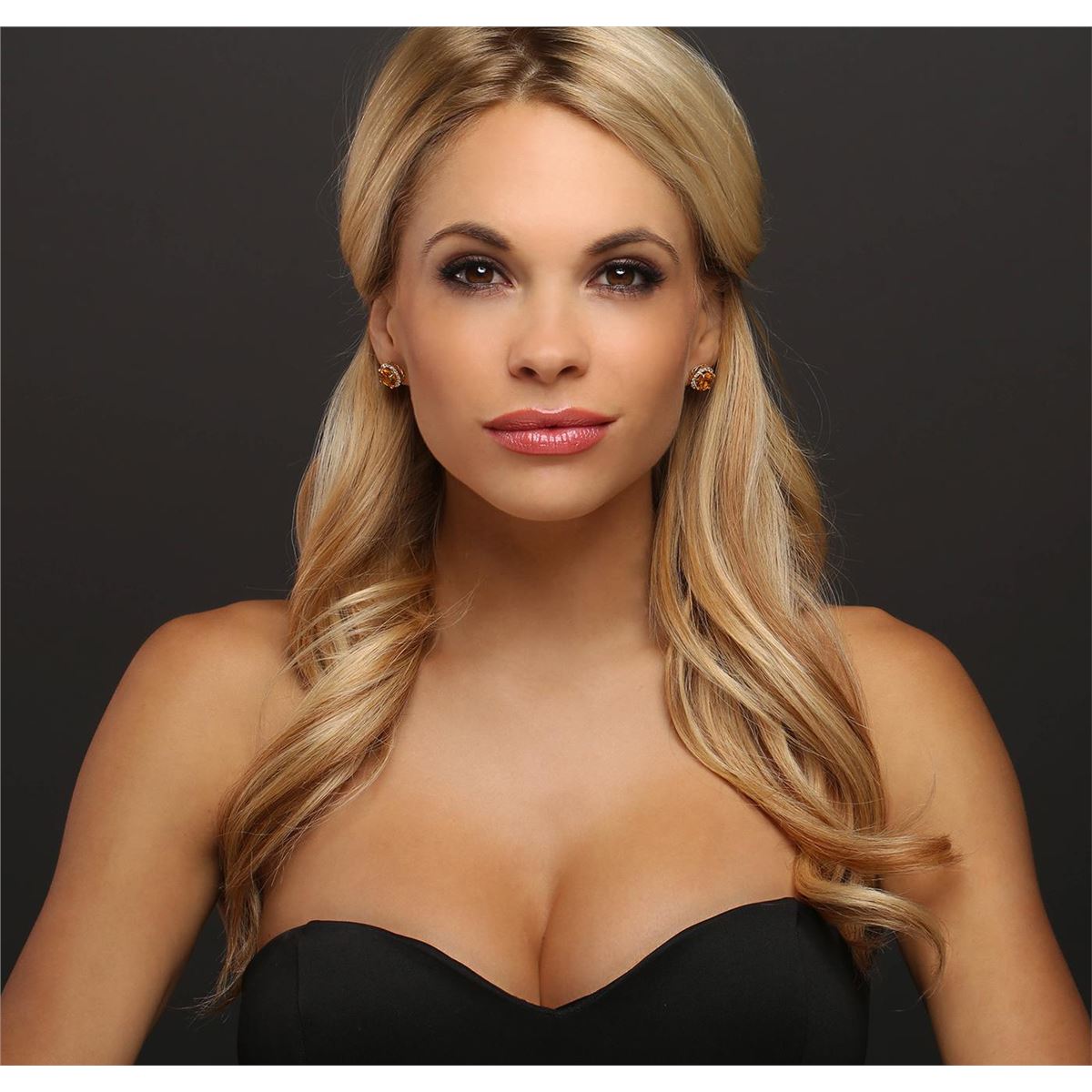 One pair electronically tested 14KT yellow gold ladies combination cast & assembled stud earrings with friction posts with a bright polish finish. Identified with markings of "14K". Condition is new. Containing: Two prong set round modified brilliant cut natural citrine quartzs, measuring 9.12 - 9.09 x 5.91 mm, approximate total weight of 5.24ct., clarity is eye clean, type I, medium light, brownish, yellow color, (GIA Y 4/3), cut is good. Thirty-Two prong set round brilliant cut diamonds, measuring 1.90 - 1.90 x 1.14mm (depth est.) approximate total weight of 32 Stones = 0.80ct. Clarity: SI-2 to I-1. Color: I - J, Cut is Good. Colored gemstones are presumed to have been subjected to commonly used enhancement processes. All diamonds and colored gemstones are graded in the mounting, unless otherwise stated. Total Weight of Colored Stones 5.24ct. Total Weight of Diamonds 0.80ct. Total Weight of Earrings 4.60 grams. GGL Appraised at $3,825.00.