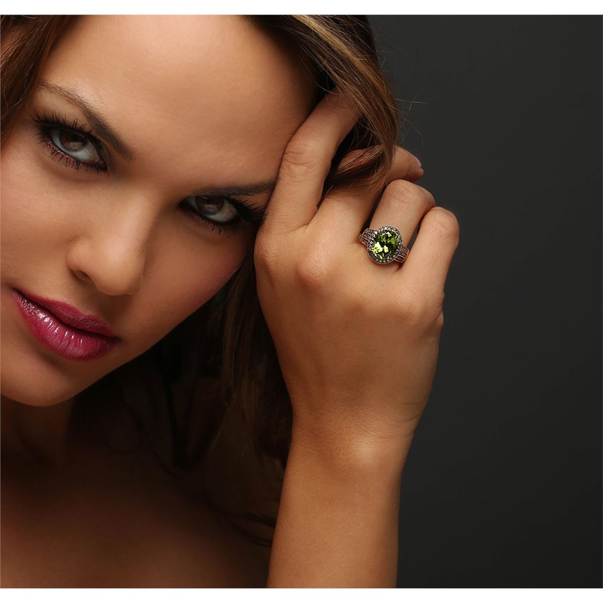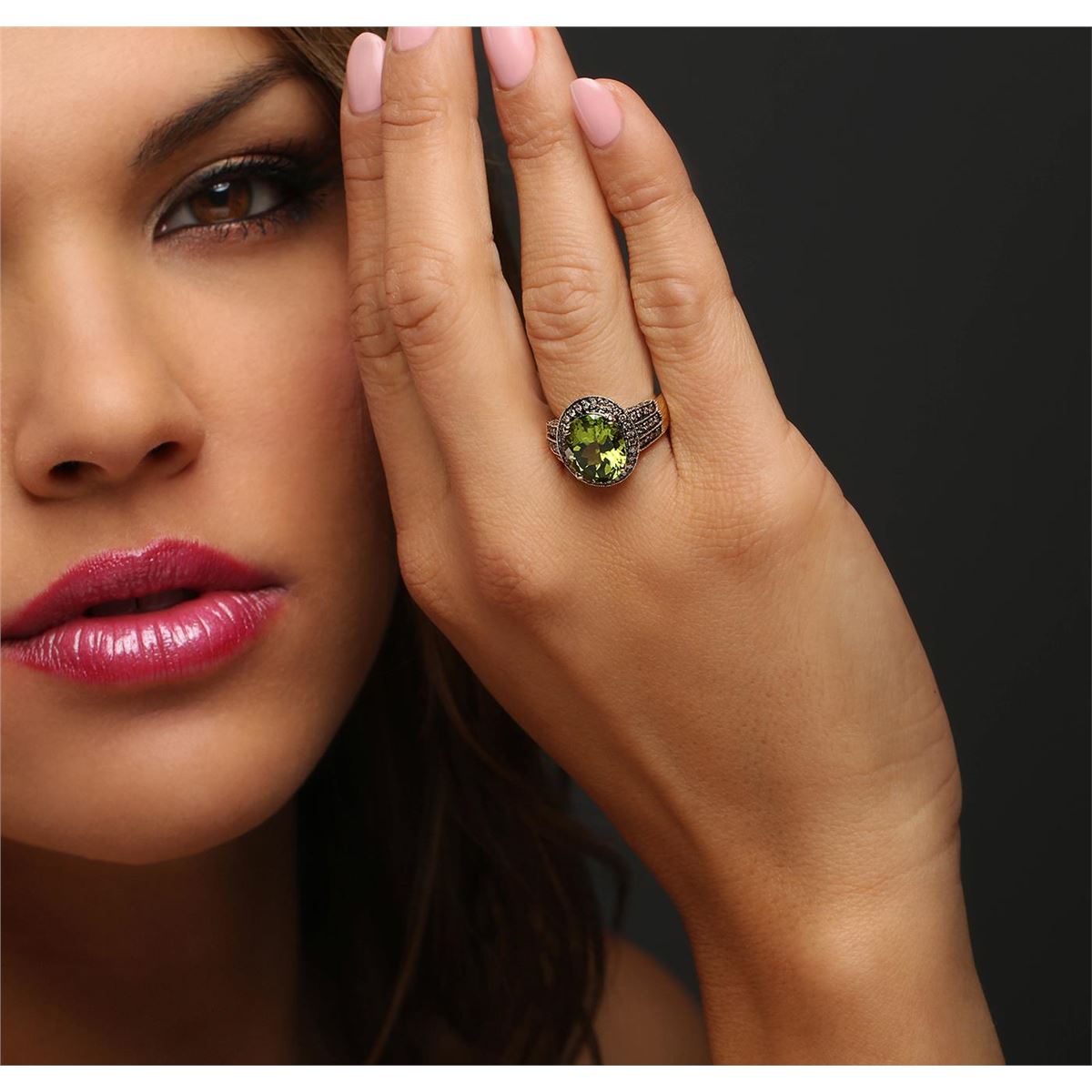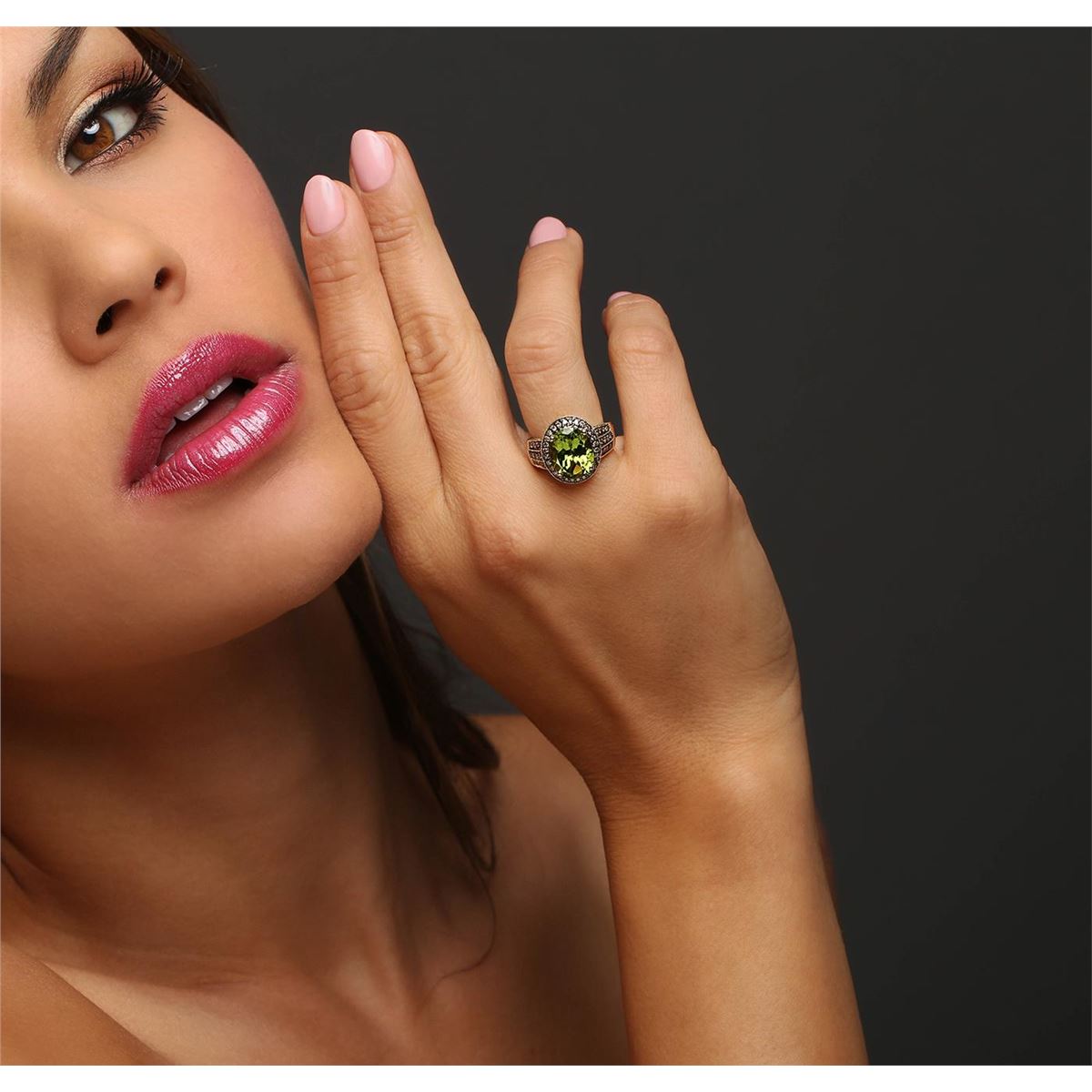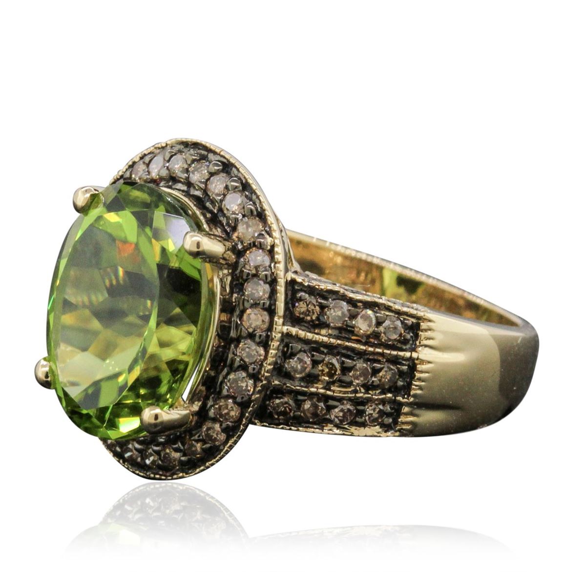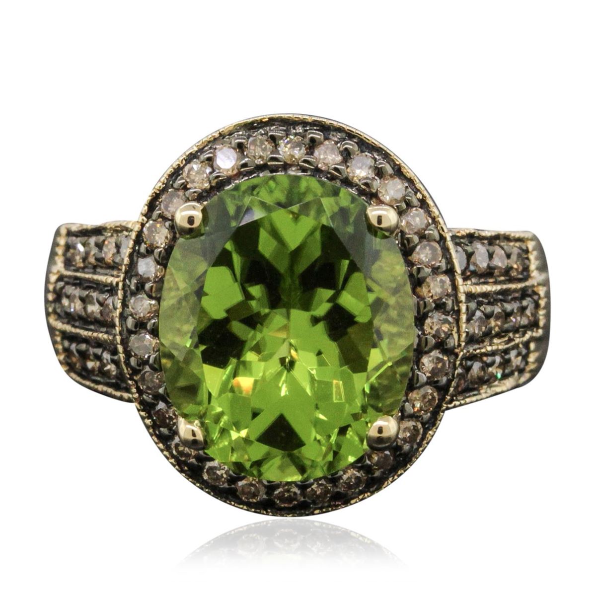 One ring featuring: 14KT yellow gold weighing 5.16 grams containing one peridot with a total weight of 5.49cts and 68 brown diamonds with a total weight of 0.59cts.