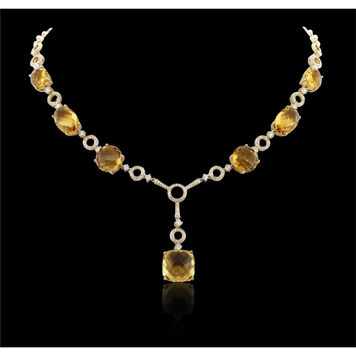 One necklace featuring: 14KT yellow gold weighing 32.05 grams containing seven citrine stones with a total weight of 50.83cts and 200 round cut diamonds with a total weight of 2.26cts.