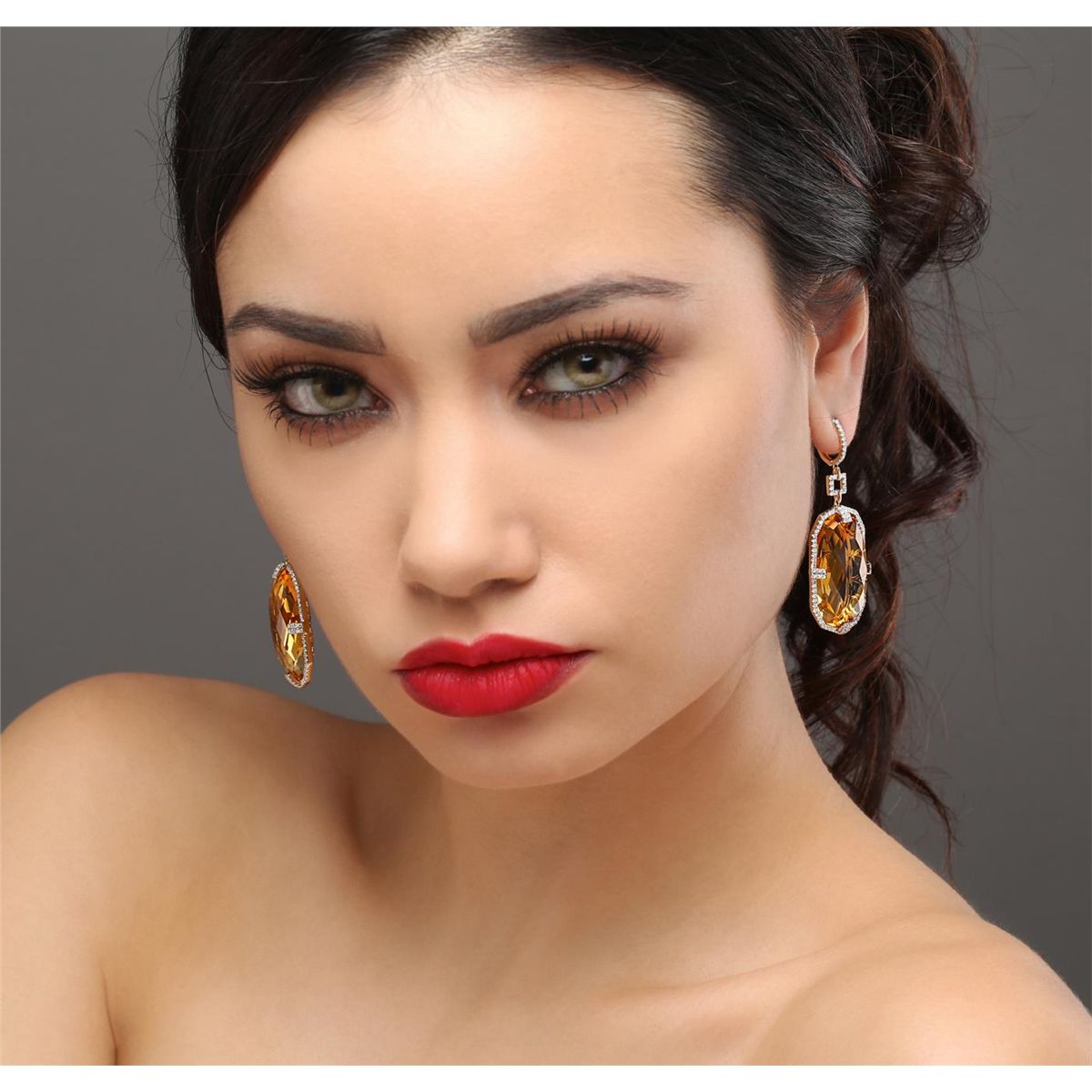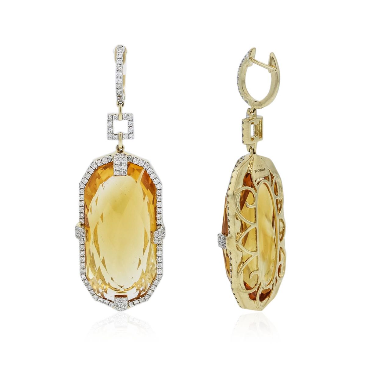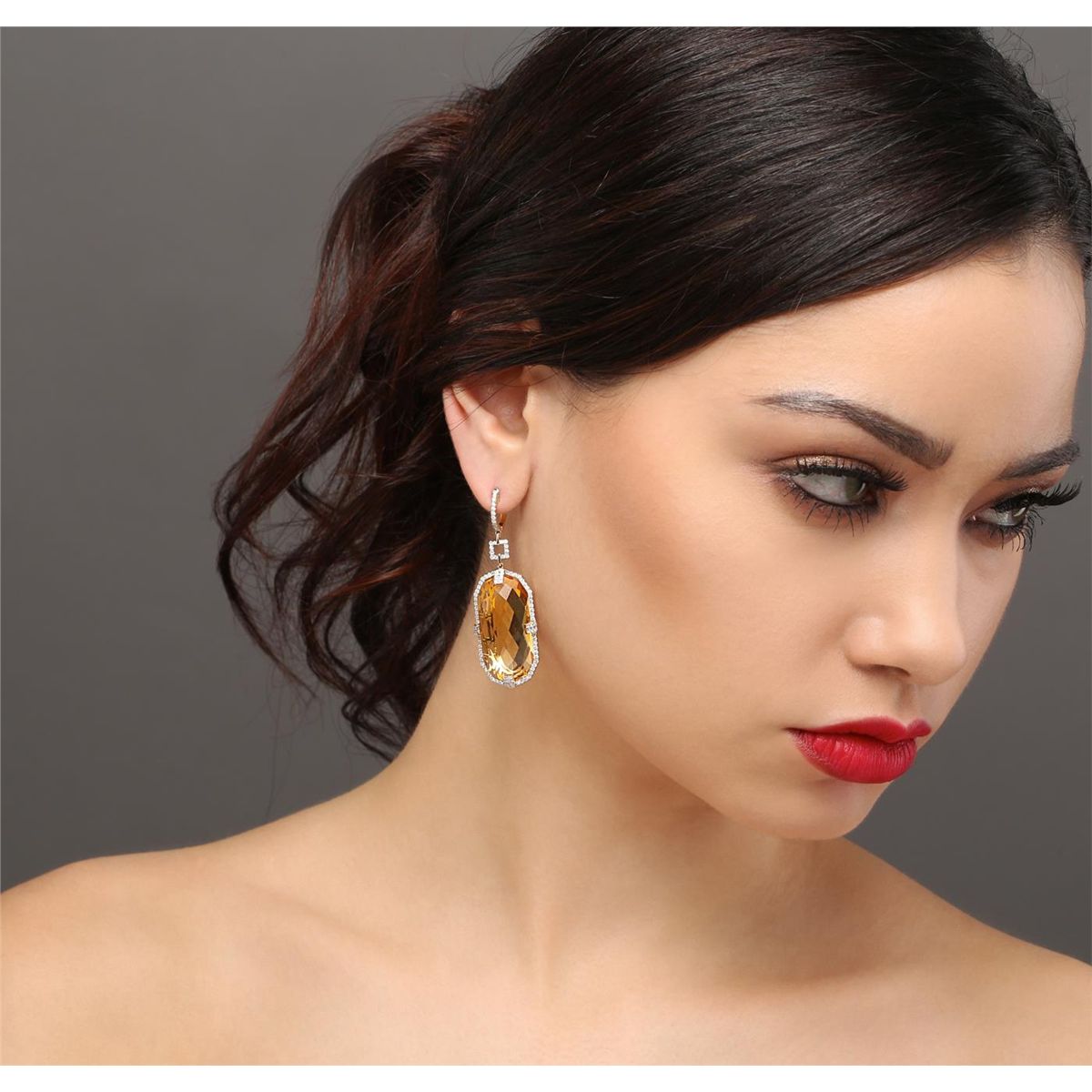 One pair of earrings featuring: 14KT yellow gold weighing 10.55 grams containing two citrines with a total weight of 55.54ct and 214 round diamonds with a total weight of 1.40ct.