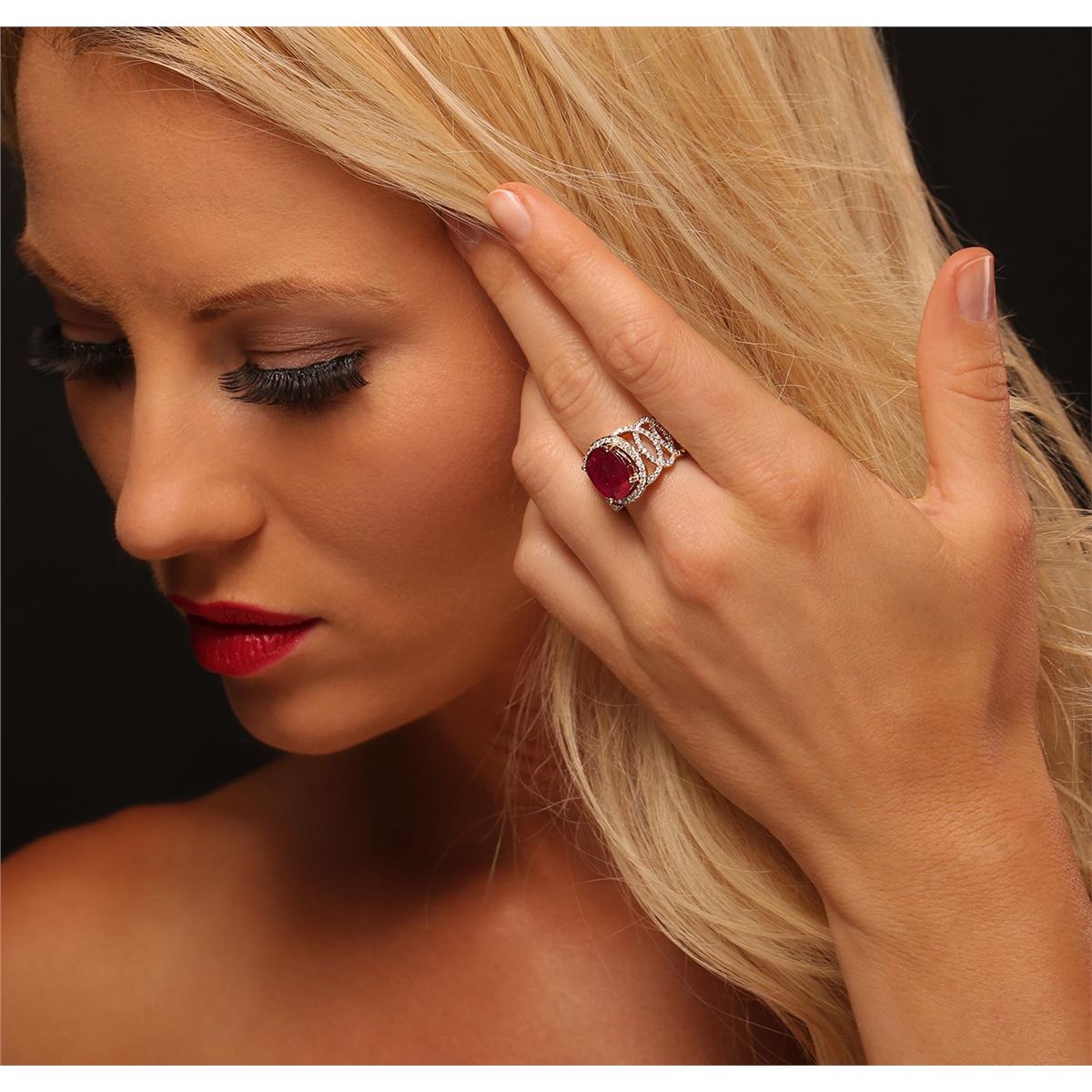 One electronically tested 14KT yellow gold Ladies combination cast & assembled ring with a bright polish finish. Condition is new. Identified with markings of "14K". Containing: One prong set oval modified mixed cut natural ruby, measuring 12.00 x 10.00 x 5.71mm, approximate weight of 6.10ct., clarity is heavily included, type II, medium dark, moderately strong, strongly purplish red color, (GIA stpR 6/4), cut is good. Colored gemstones are presumed to have been subjected to commonly used color/clarity enhancement processes. One Hundred Eighteen prong set round brilliant cut diamonds, measuring 1.30 - 1.30 x 0.78mm (depth est.) approximate. Total Weight of 118 Stones = 0.87ct. Clarity: I-1 to I-2. Color: H - I, Cut is Good. Total Weight of Colored Stones 6.10ct. Total Weight of Diamonds 0.87ct. Total Weight of Ring 7.50 grams. GGL Appraised at $7,565.00.