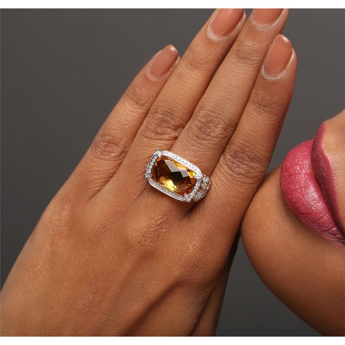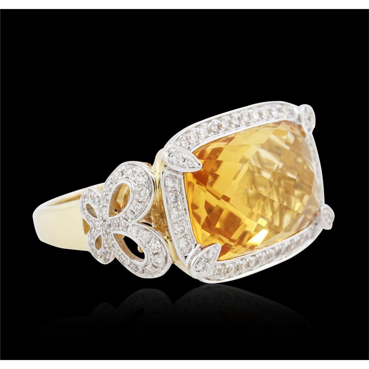One ring featuring: 14KT yellow gold weighing 6.00 grams containing one citrine center stone with a total weight of 6.76ct and 104 round diamonds with a total weight of 0.49cts.