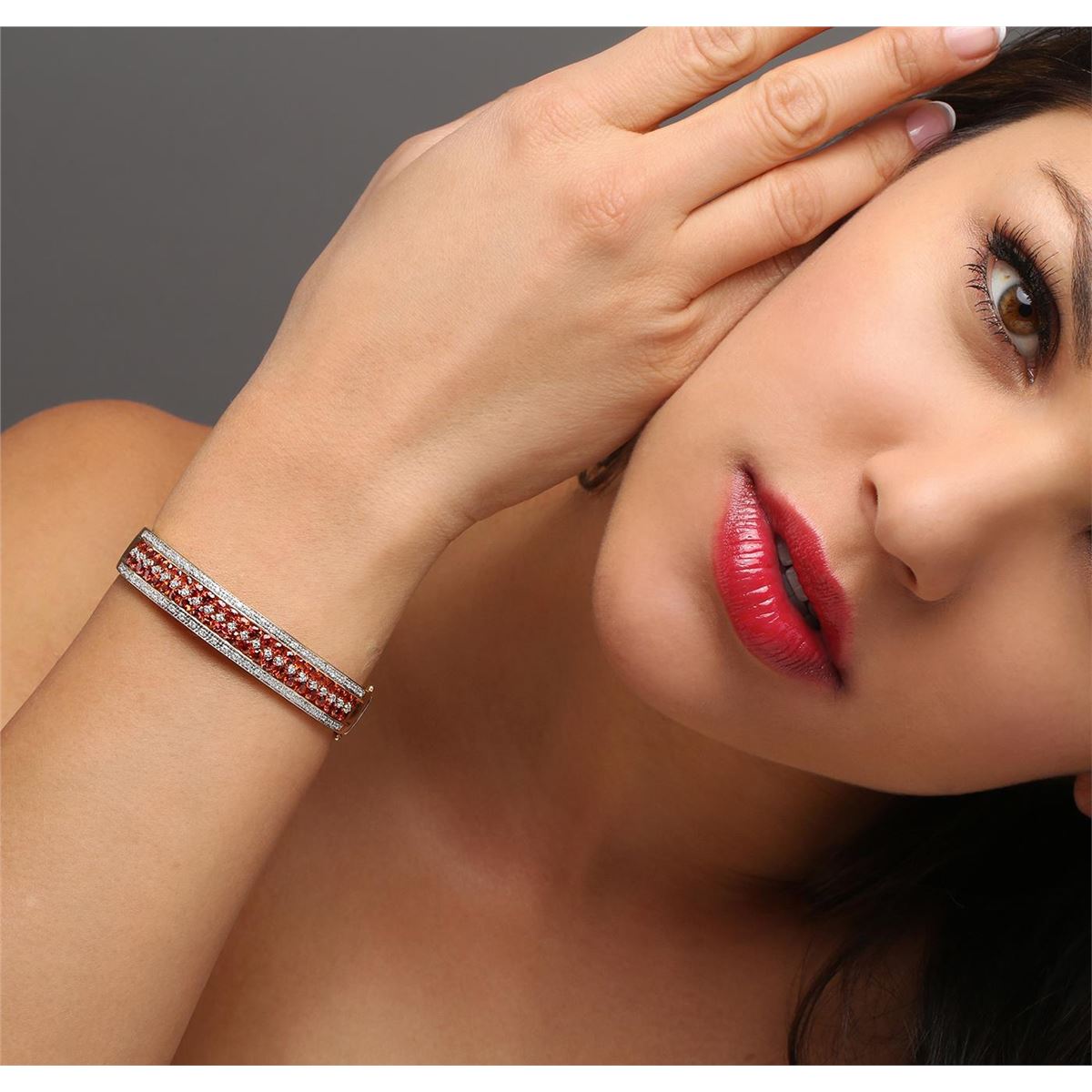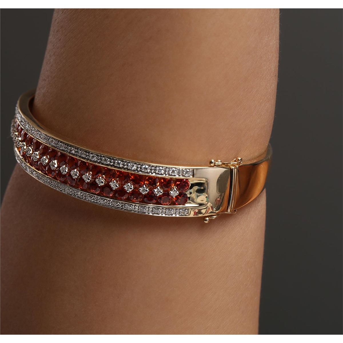 One bangle bracelet featuring: 14KT yellow gold weighing 22.70 grams containing 46 orange sapphires with a total weight of 7.00ct and 72 round diamonds with a total weight of 0.85ct.