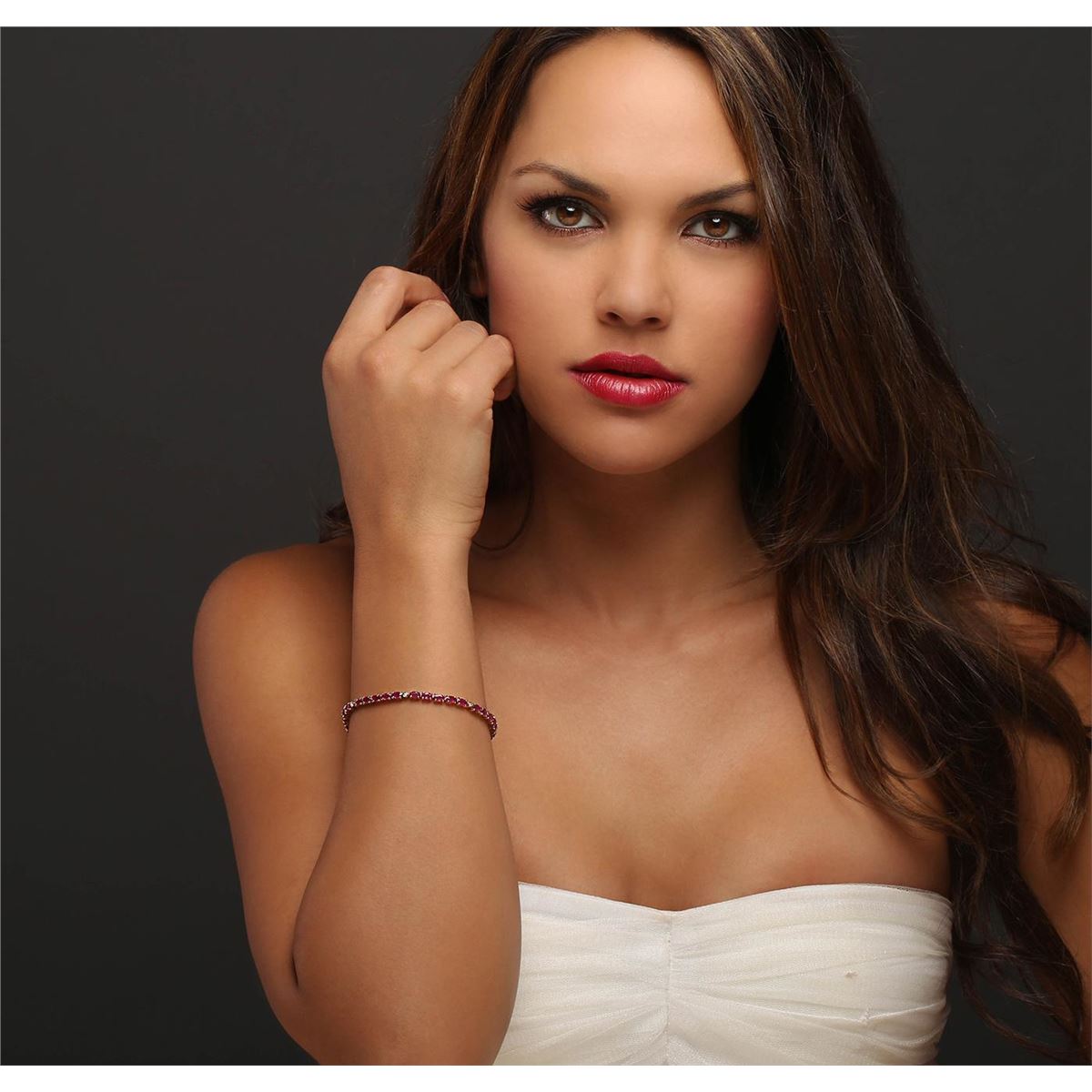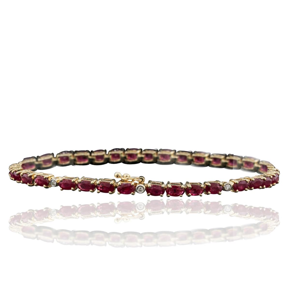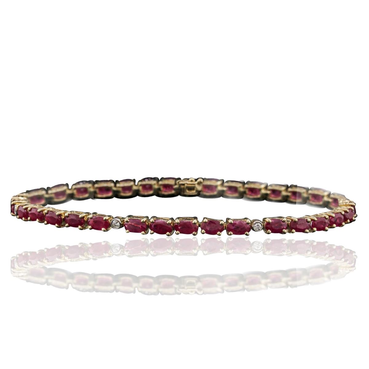 One bracelet featuring: 14KT yellow gold weighing 8.90 grams containing 33 rubies with a total weight of 7.70cts and seven round cut diamonds with a total weight of 0.10cts.