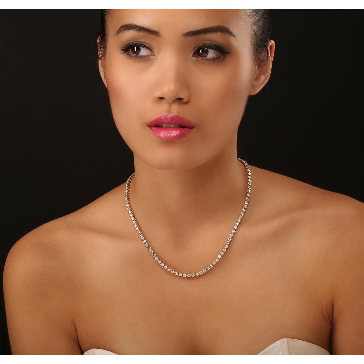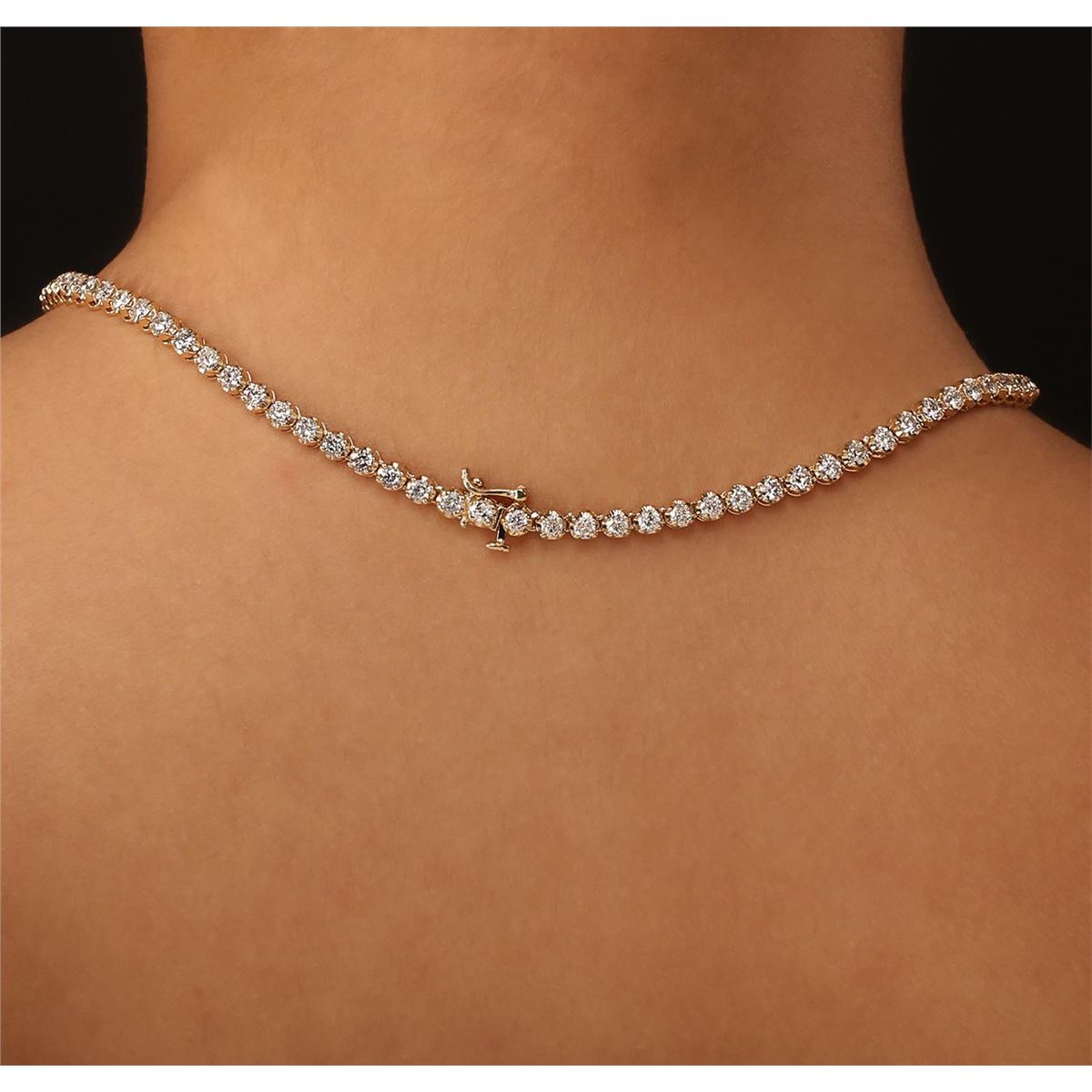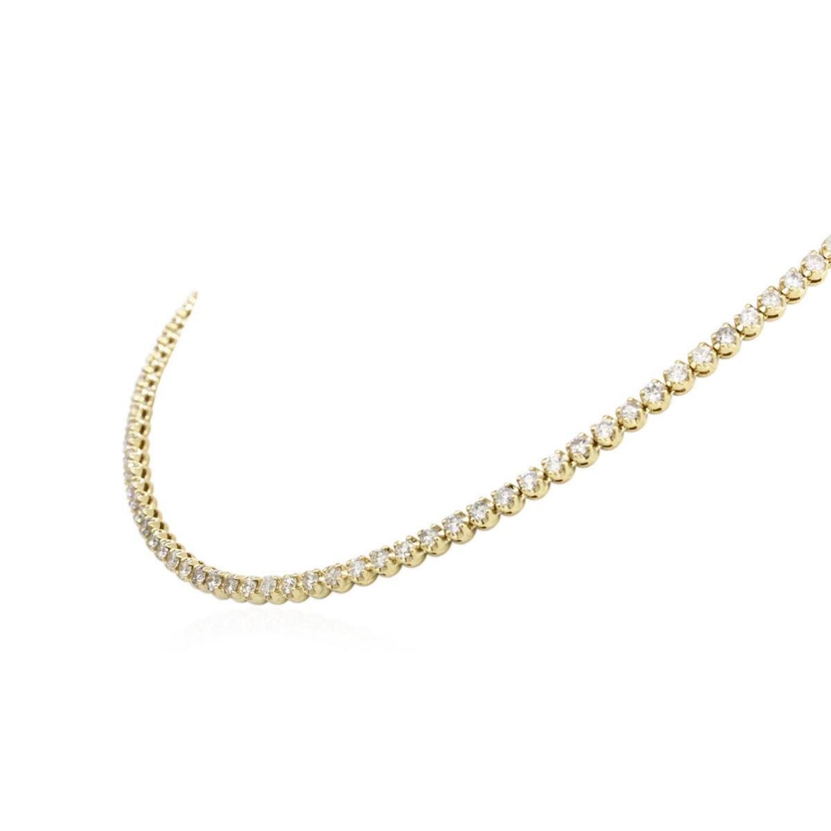 One electronically tested 14KT yellow gold ladies combination cast & assembled necklace with a hidden box clasp with a bright polish finish. Condition is new. Measurements: 16.50" in length. Identified with markings of "14K". Containing: One Hundred Four prong set round brilliant cut diamonds, measuring 2.80 - 2.80 x 1.68mm (depth est.) approximate total weight of 104 Stones = 8.35ct. Clarity: I-1 to I-2. Color: I - J, Cut is Good. All diamonds are graded in the mounting, unless otherwise stated. Total Weight of Diamonds 8.35ct. Total Weight of Necklace 26.10 grams. GGL Appraised at $25,315.00.