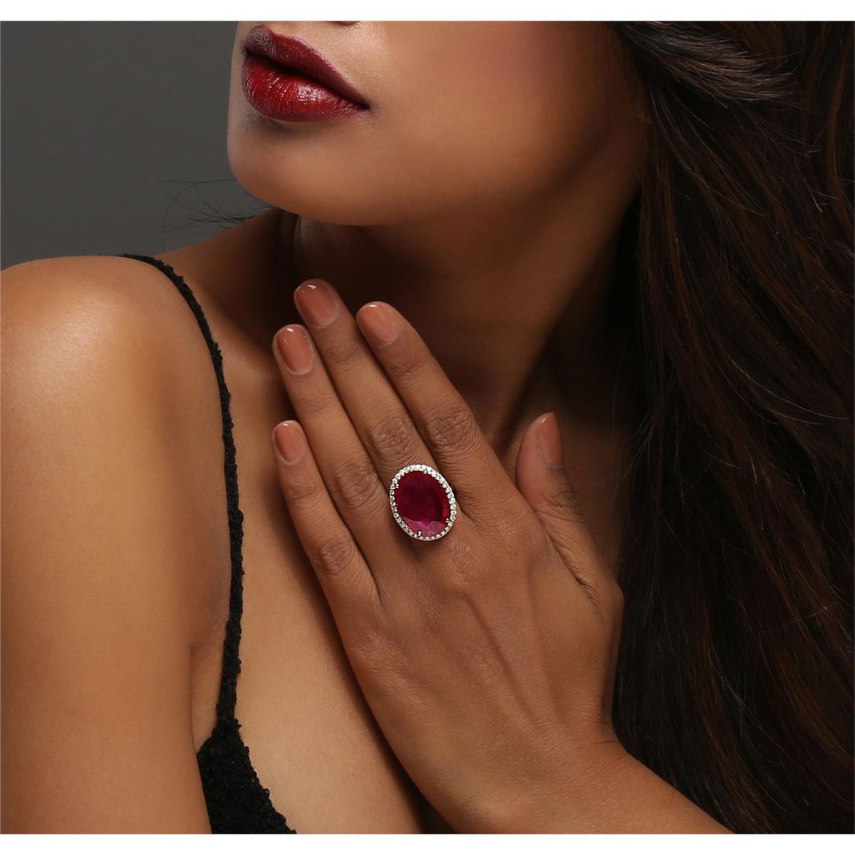One electronically tested 14KT yellow gold ladies combination cast & assembled ruby and diamond ring with a split shoulder shank with a bright polish finish. Identified with markings of "14K". Condition is new. Containing: One prong set oval modified brilliant cut natural ruby, measuring 20.07 x 14.89 x 3.81mm, approximate weight of 9.31ct., clarity is heavily included, type II, medium dark, moderately strong, strongly purplish red color, (GIA stpR 6/4), cut is good. Thirty-Six prong set round brilliant cut diamonds, measuring 1.30 - 1.30 x 0.78mm (depth est.) approximate total weight of 36 Stones = 0.29ct. . Clarity: I-1 to I-2. Color: J - K, Cut is Good. Colored gemstones are presumed to have been subjected to commonly used enhancement processes. All diamonds and colored gemstones are graded in the mounting, unless otherwise stated.. Total Weight of Colored Stones 9.31ct.. Total Weight of Diamonds 0.29ct.. Total Weight of Ring 7.70 grams. GGL Appraised at $6,695.00.