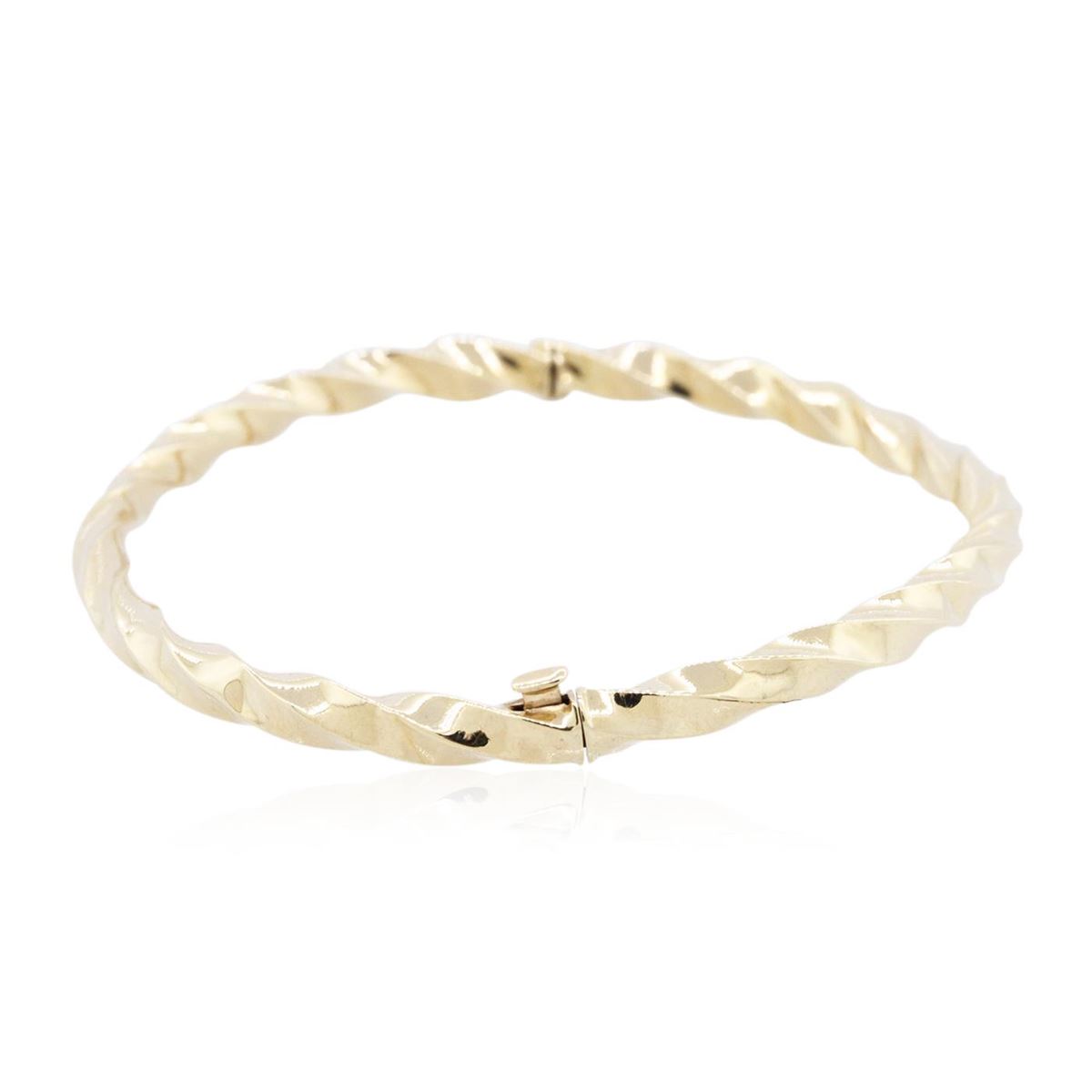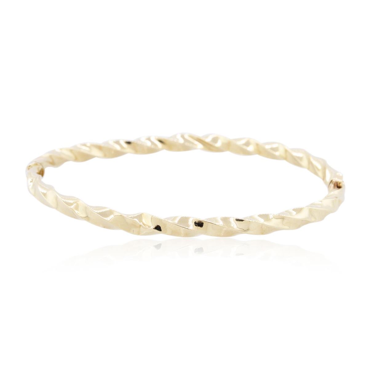 One light weight twist style bangle bracelet featuring: 14KT yellow gold weighing 4.80 grams.
