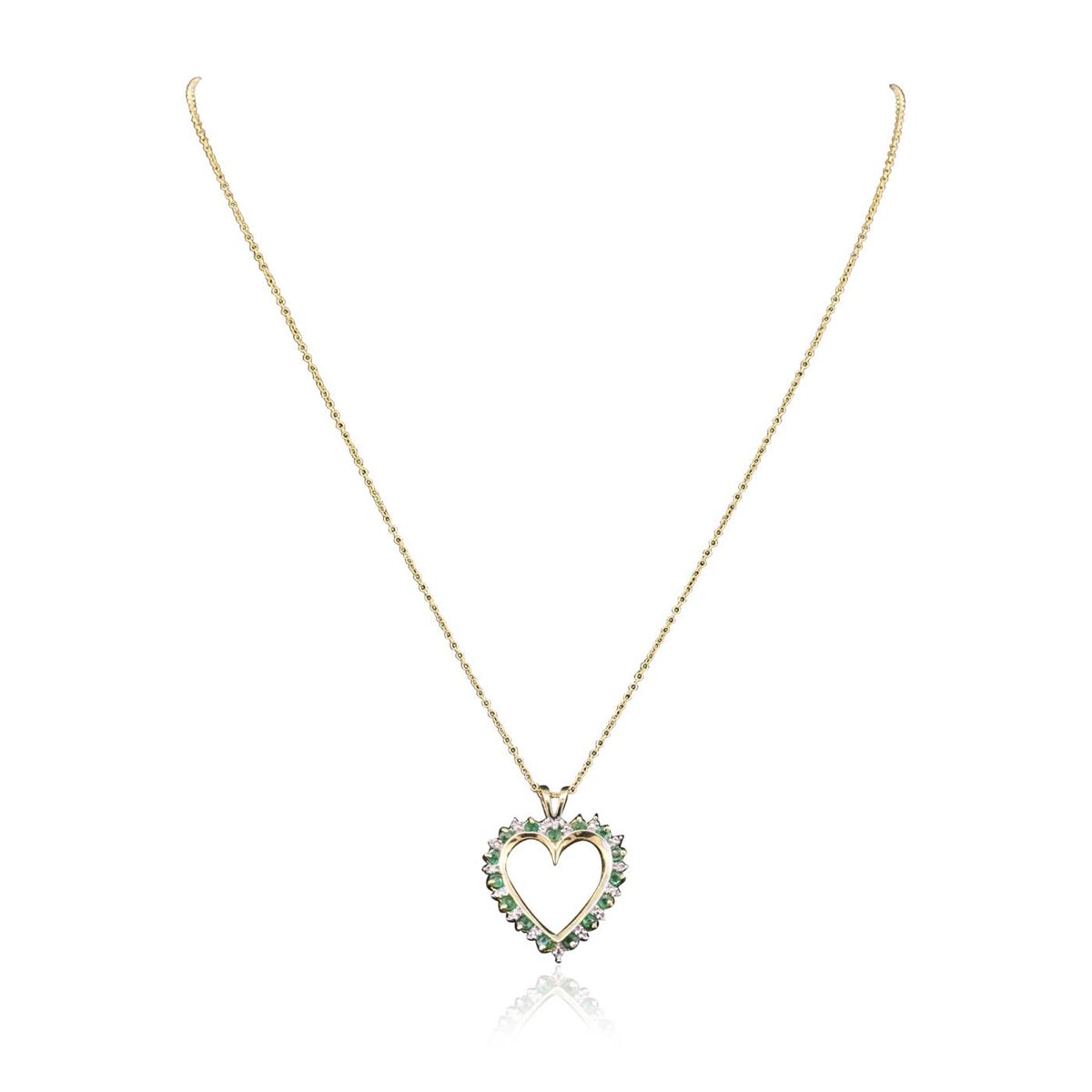One pendant with chain featuring: 14KT Yellow Gold with a total weight of 3.00 grams, Emerald, and diamonds with a total weight of 0.05ctw.