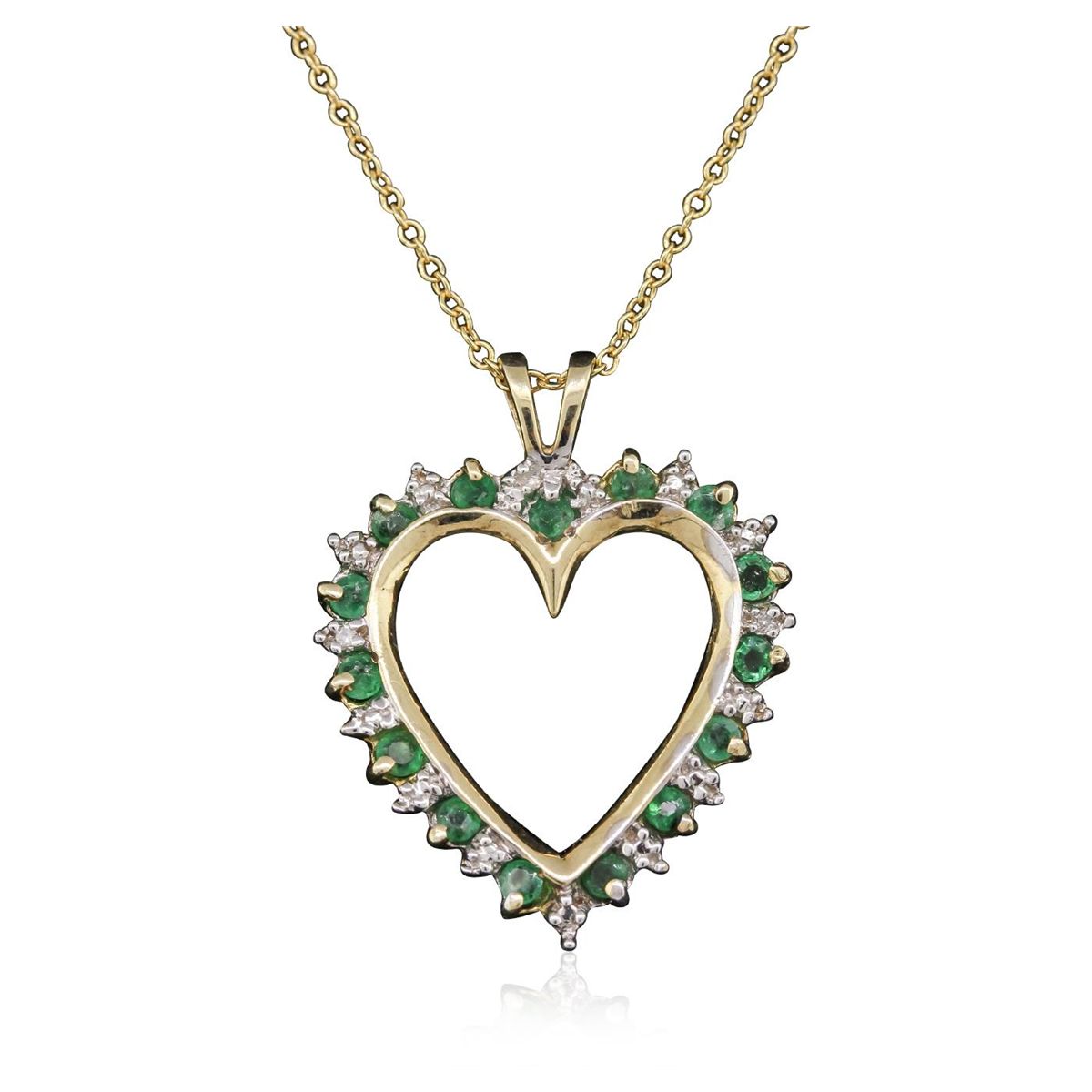 One pendant with chain featuring: 14KT Yellow Gold with a total weight of 3.00 grams, Emerald, and diamonds with a total weight of 0.05ctw.