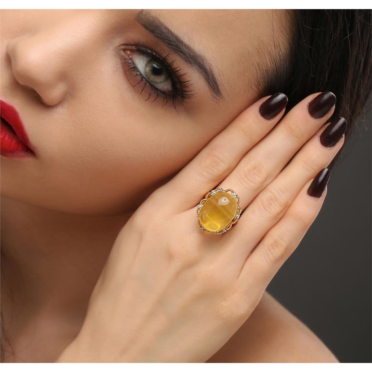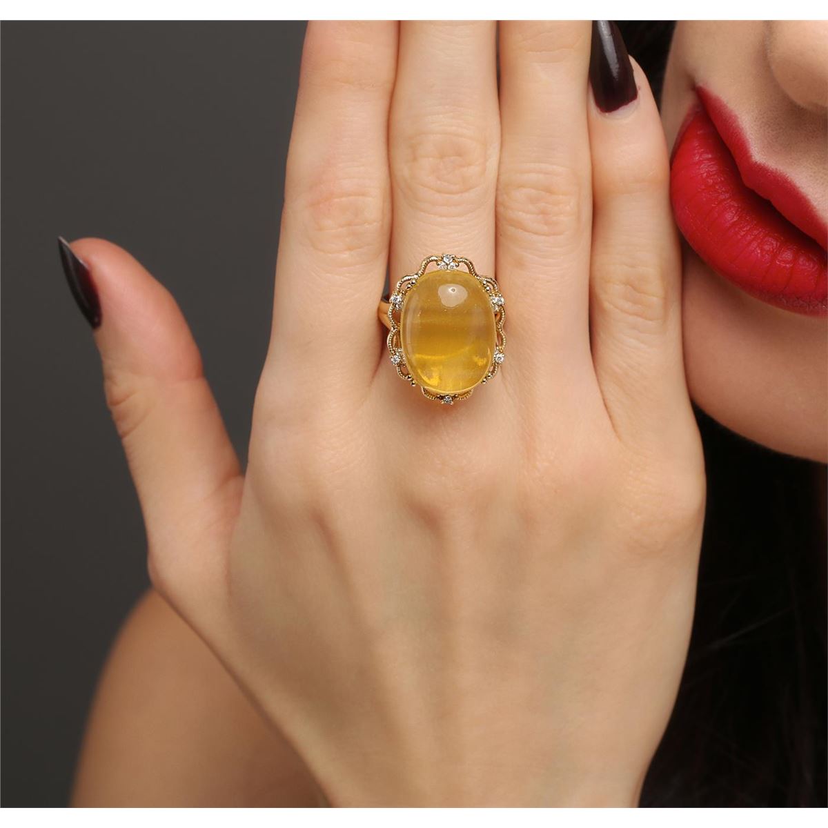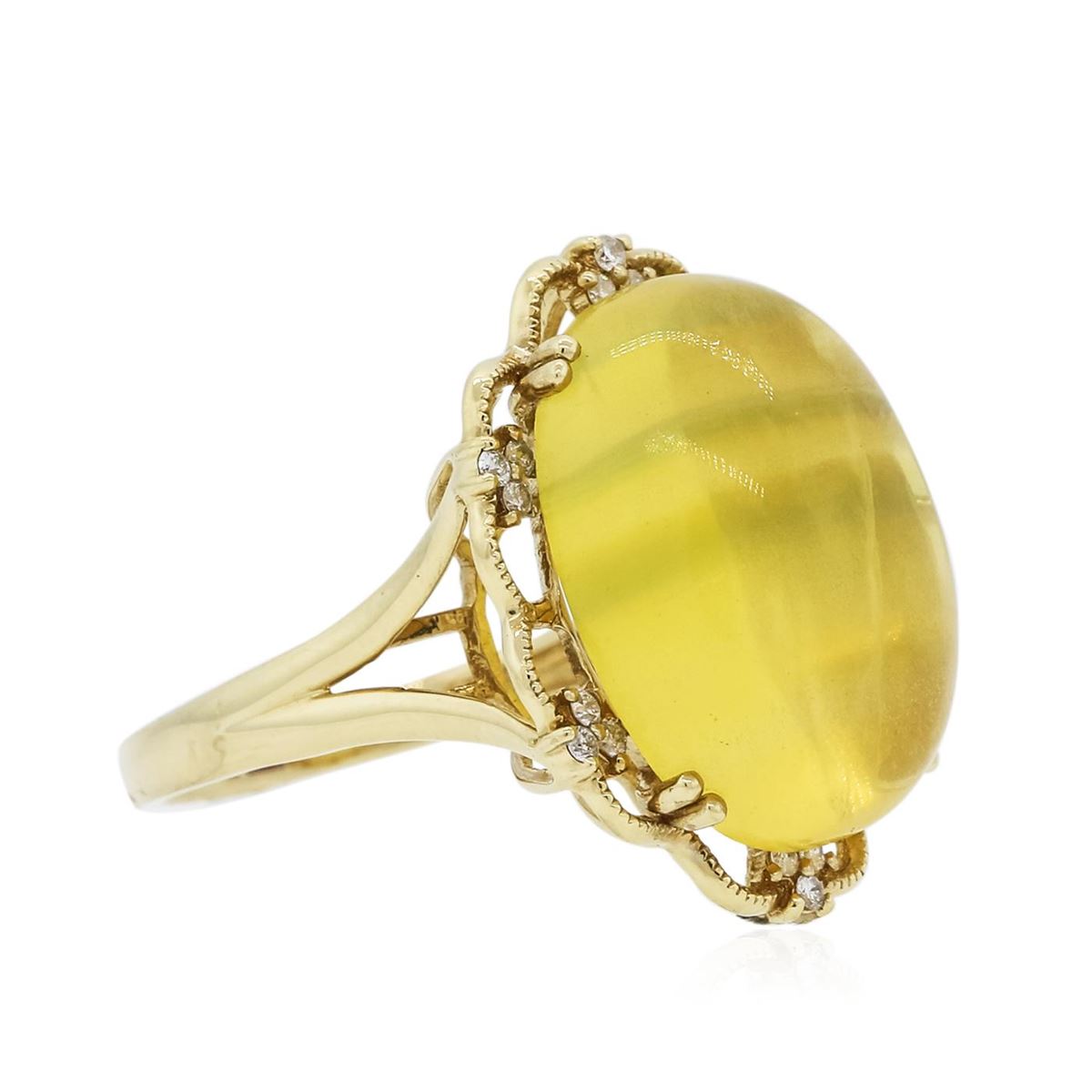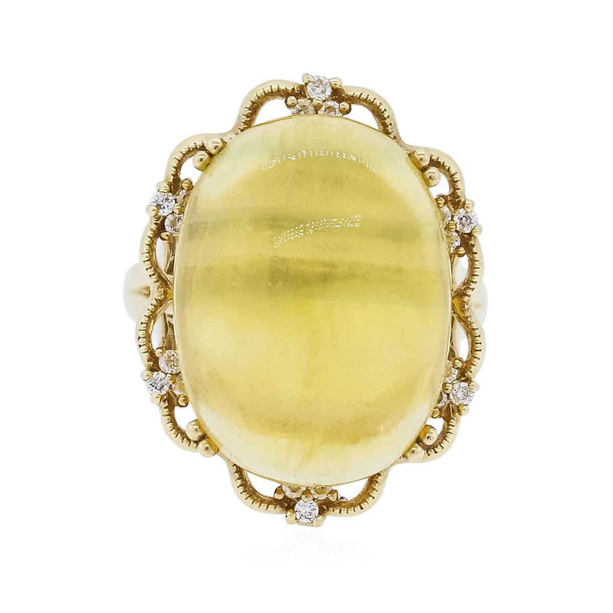 One ring featuring: 14KT yellow gold weighing 4.72 grams containing one fluorite center stone and 18 round diamonds for a total diamond weight of 0.18ct.