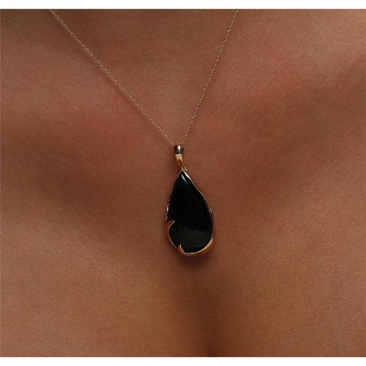 One Pendant With Chain featuring: 14KT Yellow Gold with a total weight of 5.58 grams, and Onyx.