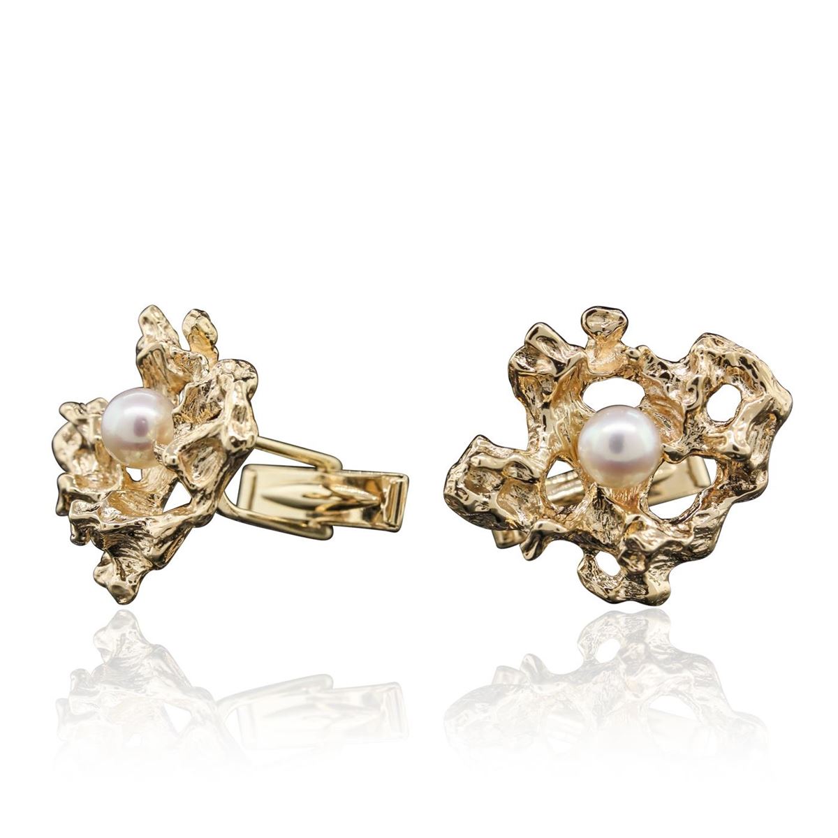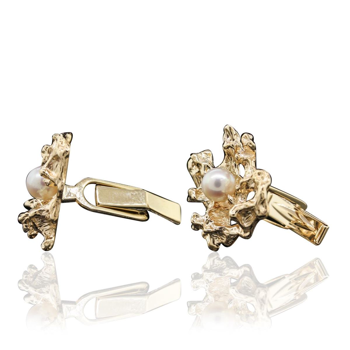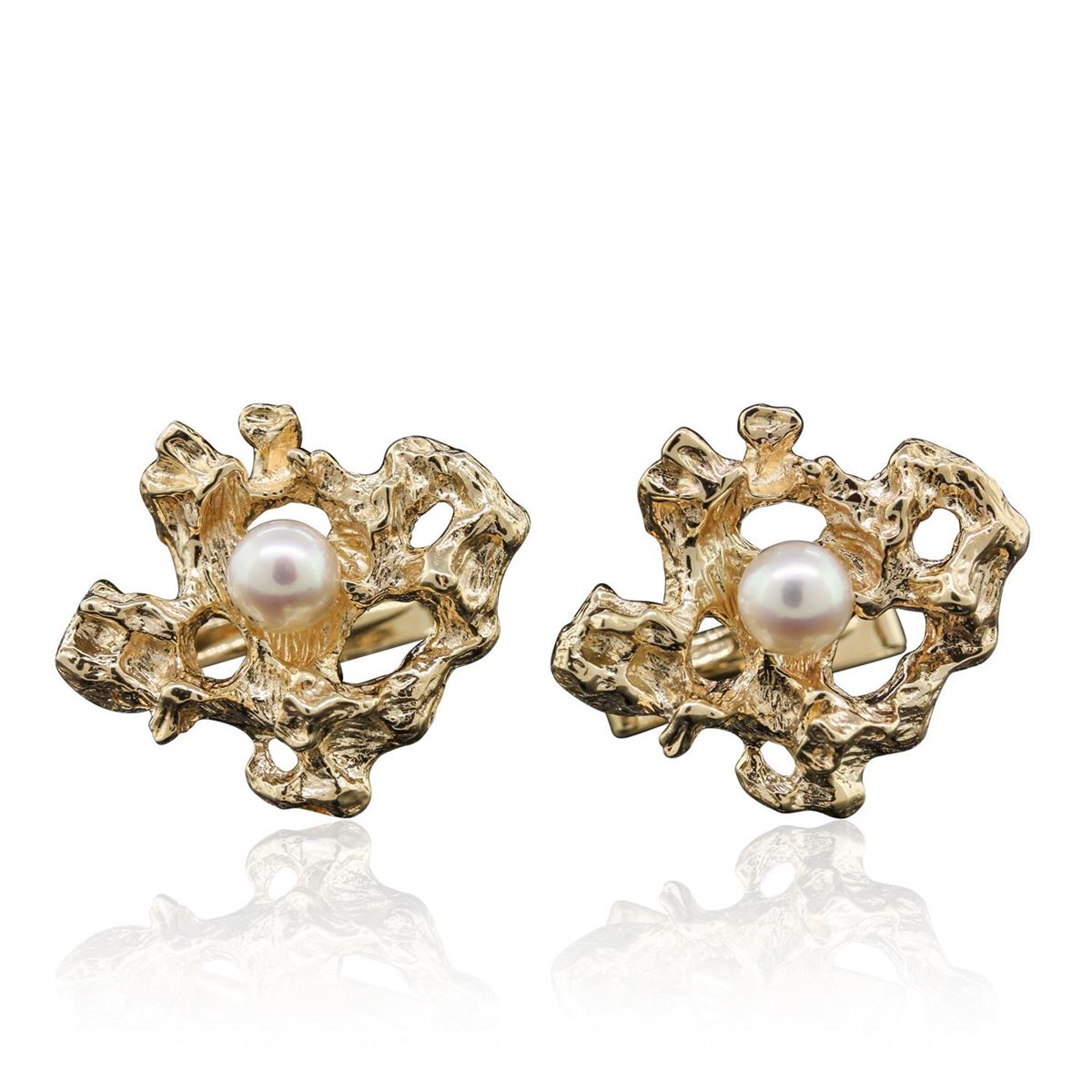 One pair of cufflinks featuring: 14KT Yellow Gold with a total weight of 17.30 grams, and Pearl.