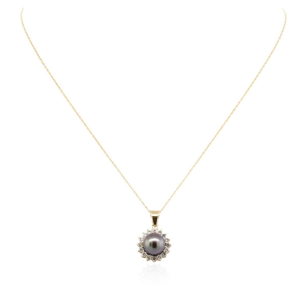 One pendant with chain featuring: 14KT yellow gold weighing 3.00 grams containing one pearl measuring approximately 8.00mm and round diamonds with a total weight of 0.25cts.