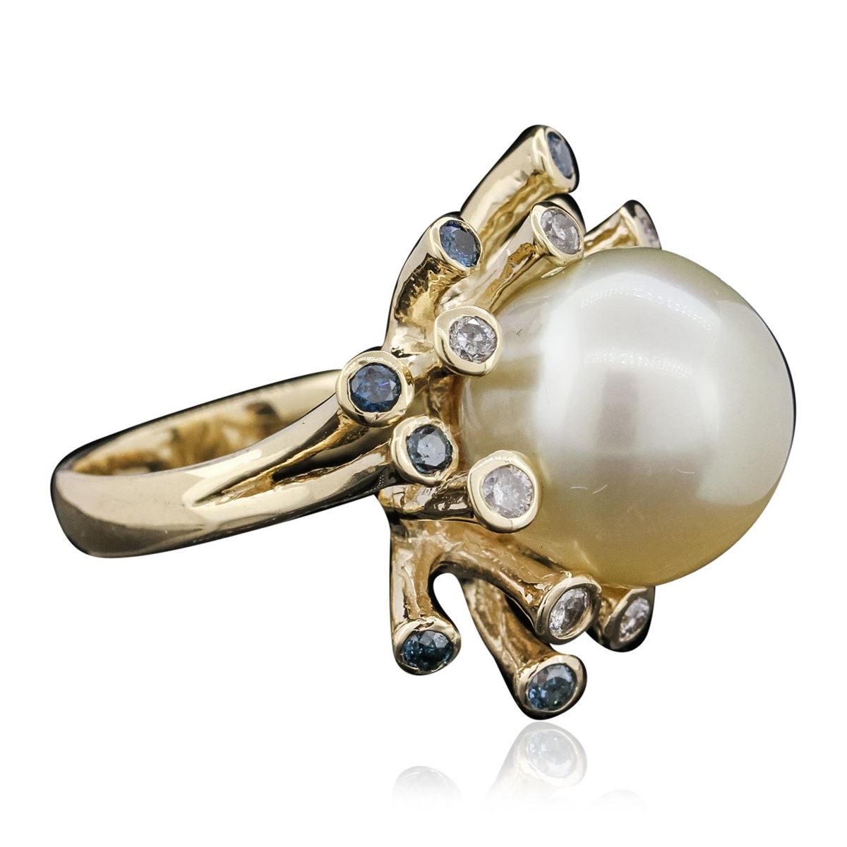 One ring featuring: 14.41 grams of 14KT yellow gold, (1) pearl, round diamonds with a total weight of 0.81cts.