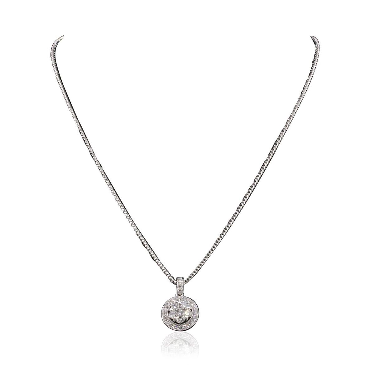 One electronically tested 14-18KT white gold ladies combination cast & die struck pendant & chain 17.5" long, medium cable link with a lobster claw clasp with a bright polish finish. Condition is new. Identified with markings of "585-18K". Containing: Six invisible set round brilliant cut diamonds, measuring 3.60 - 3.60 x 2.16mm (depth est.) approximate. Total Weight of 6 Stones = 1.02ct. Clarity: SI-1 to SI-2. Color: I - J, Cut is Good. Twenty-Six prong set round brilliant cut diamonds, measuring 1.60 - 1.60 x 0.96mm (depth est.) approximate. Total Weight of 26 Stones = 0.39ct. Clarity: SI-2 to I-1. Color: I - J, Cut is Good. All diamonds are graded in the mounting, unless otherwise stated. Total Weight of Diamonds 1.41ct. Total Weight of Pendant & Chain 11.90 grams. GGL Appraised at $8,900.00.
