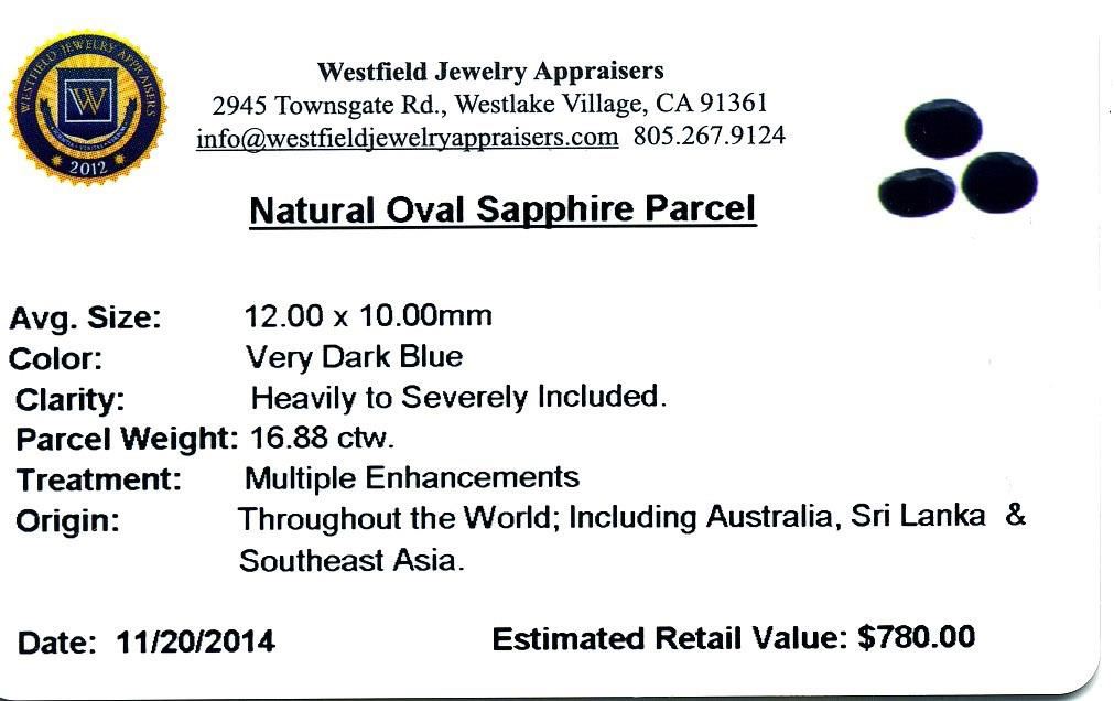 16.88cts. Natural Oval Sapphire Parcel Westfield Appraised at $780.00.