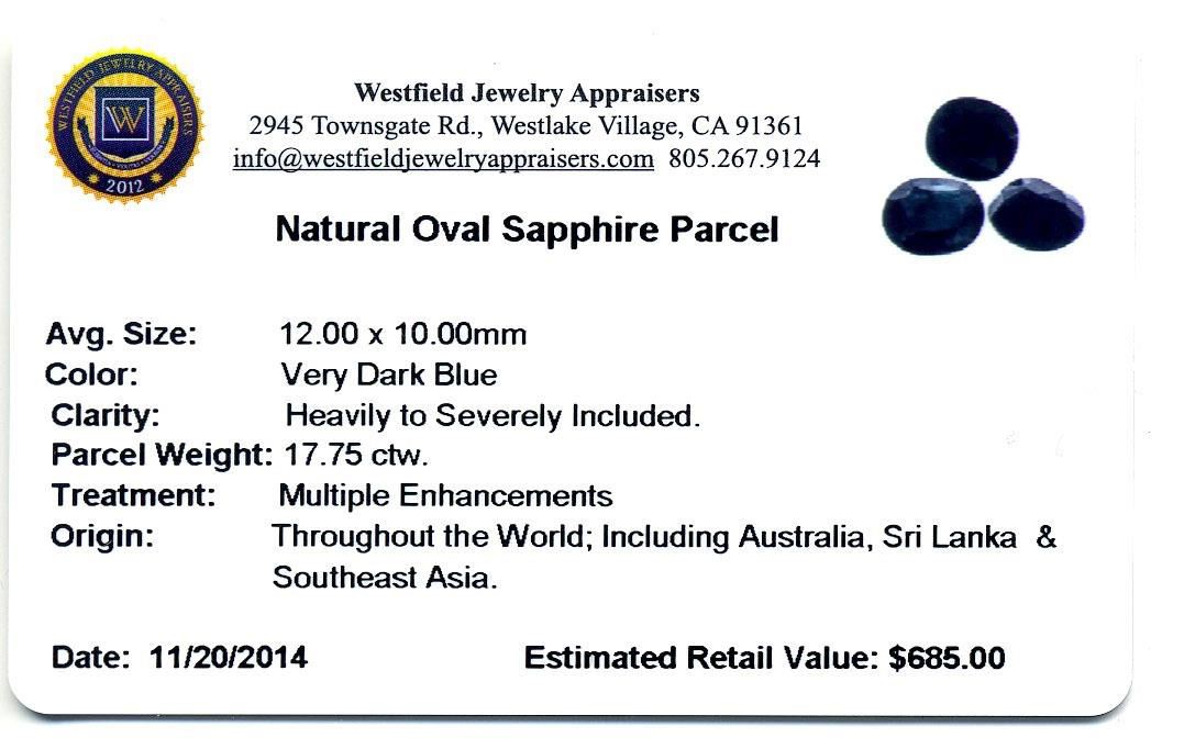 17.75ctw. Natural Oval Sapphire Parcel. Westfield Appraised at $685.00.
