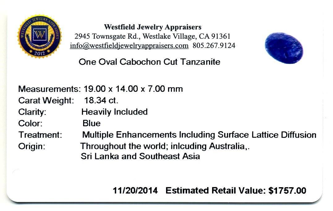 18.34ctw. One Oval Cabochon Cut Tanzanite . Westfield Appraised at $1,757.00.
