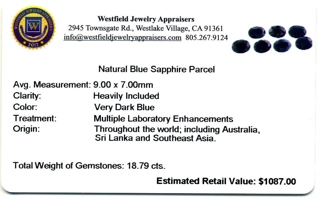 18.79cts Oval Cut Natural Blue Sapphire Parcel. Westfield Appraised at $1,087.00.
