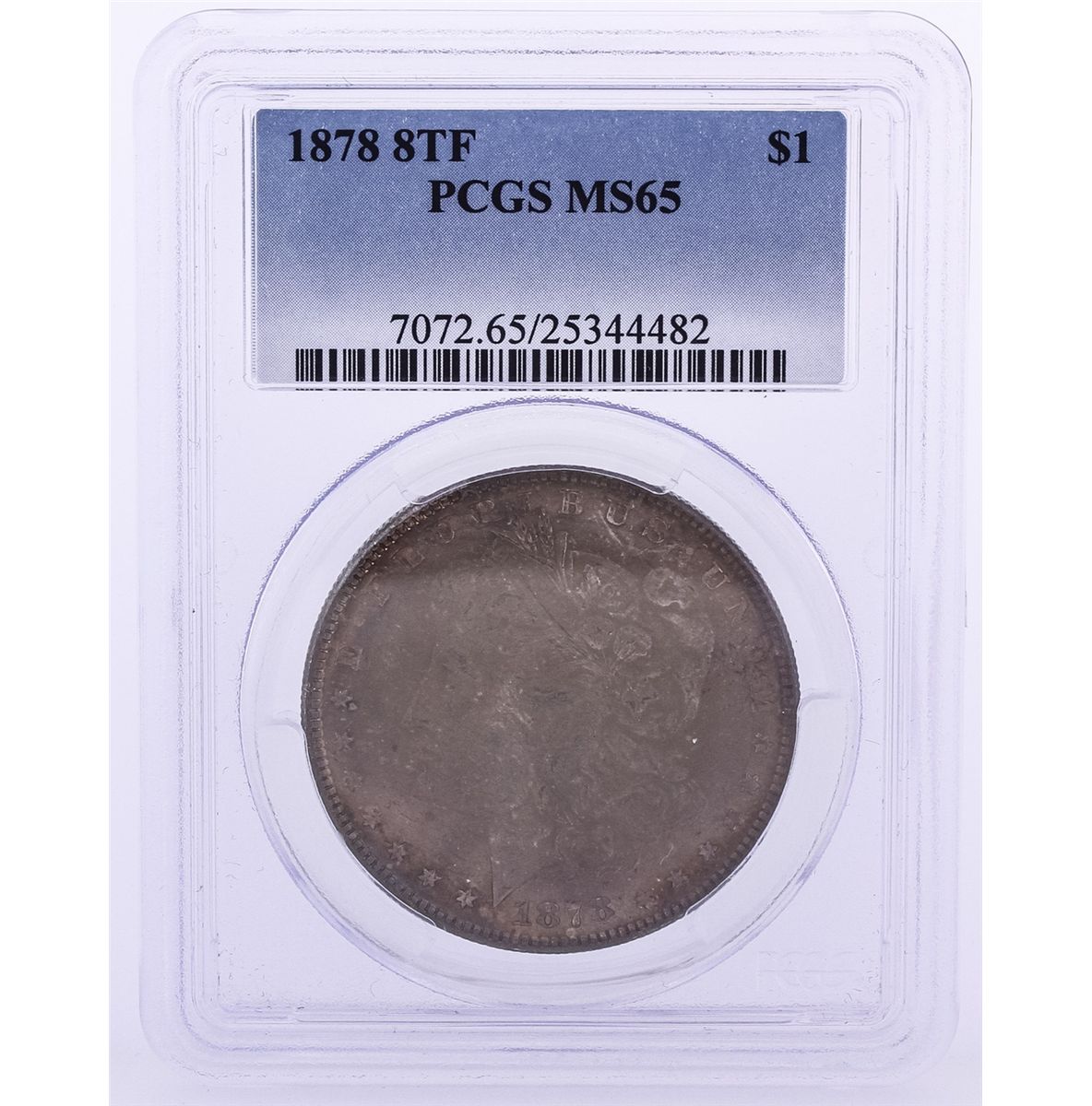One 1878 8 Tail Feather Morgan Dollar PCGS MS65.