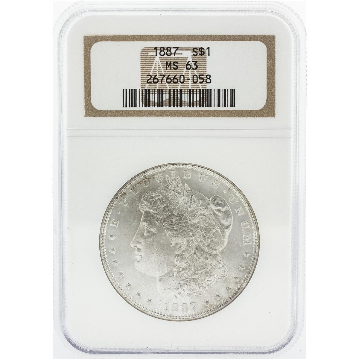 One 1887 NGC MS63 Morgan Silver Dollar Coin.