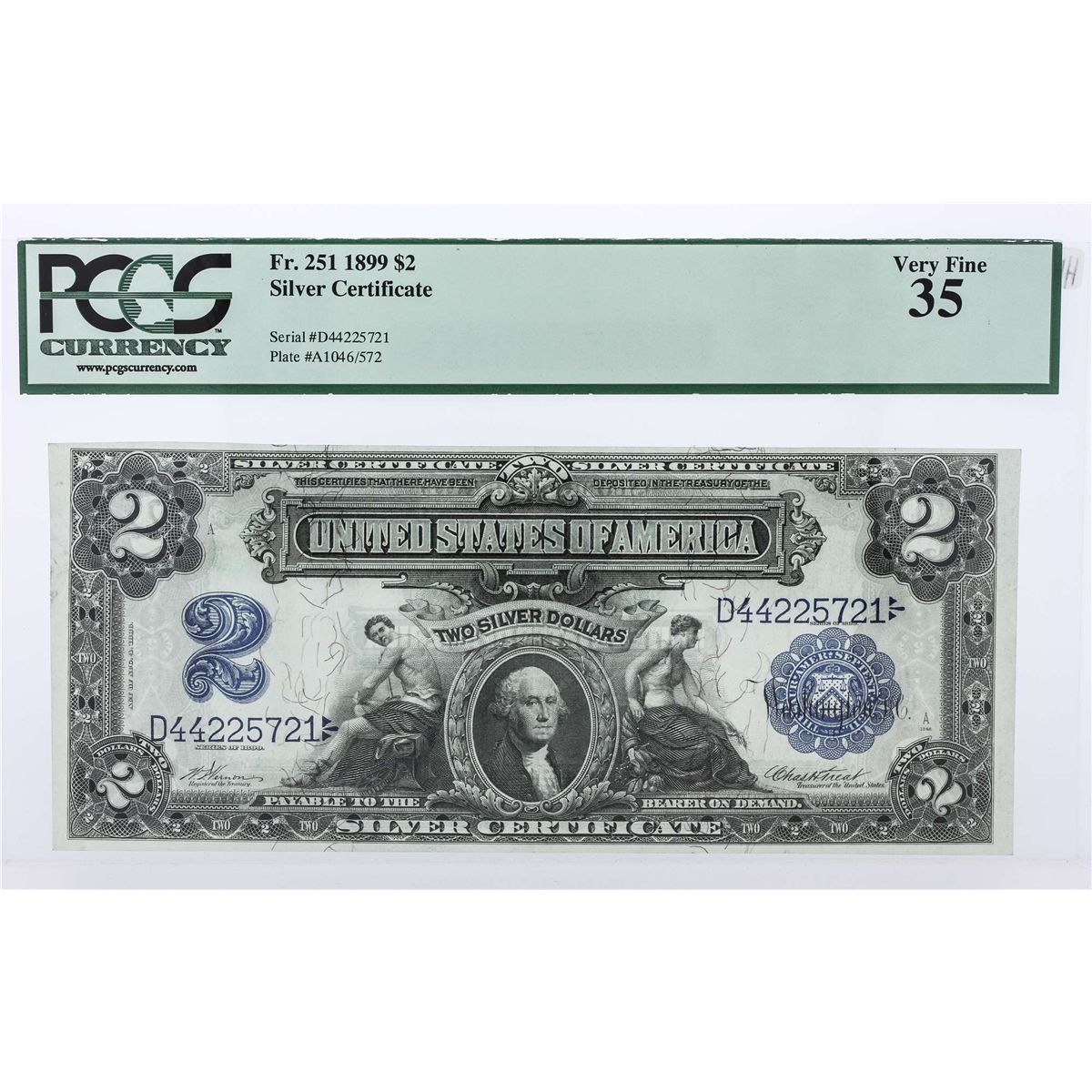 One 1889 $2 Silver Certificate Fr#251, PCGSVF35 .