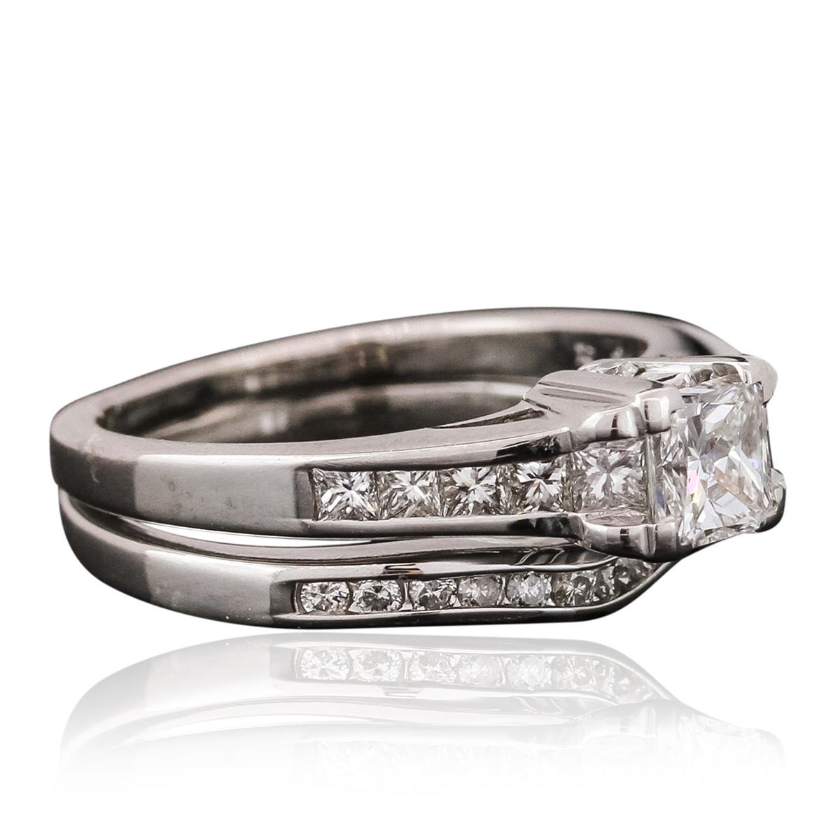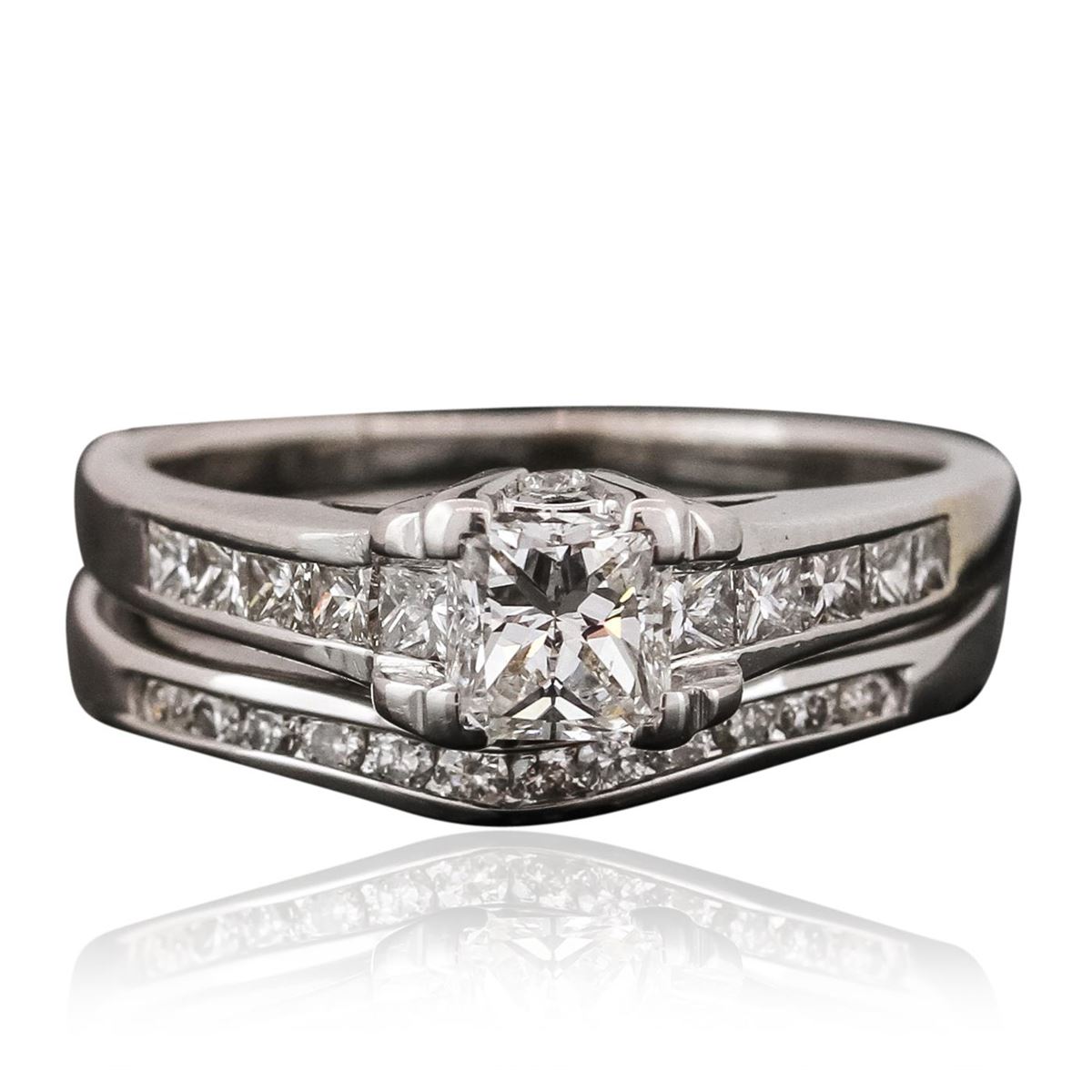 One wedding set featuring: 18KT and 14KT white gold with a total weight of 5.90 grams, diamond with a total weight of 0.50ct, and diamonds with a total weight of 0.60ctw.