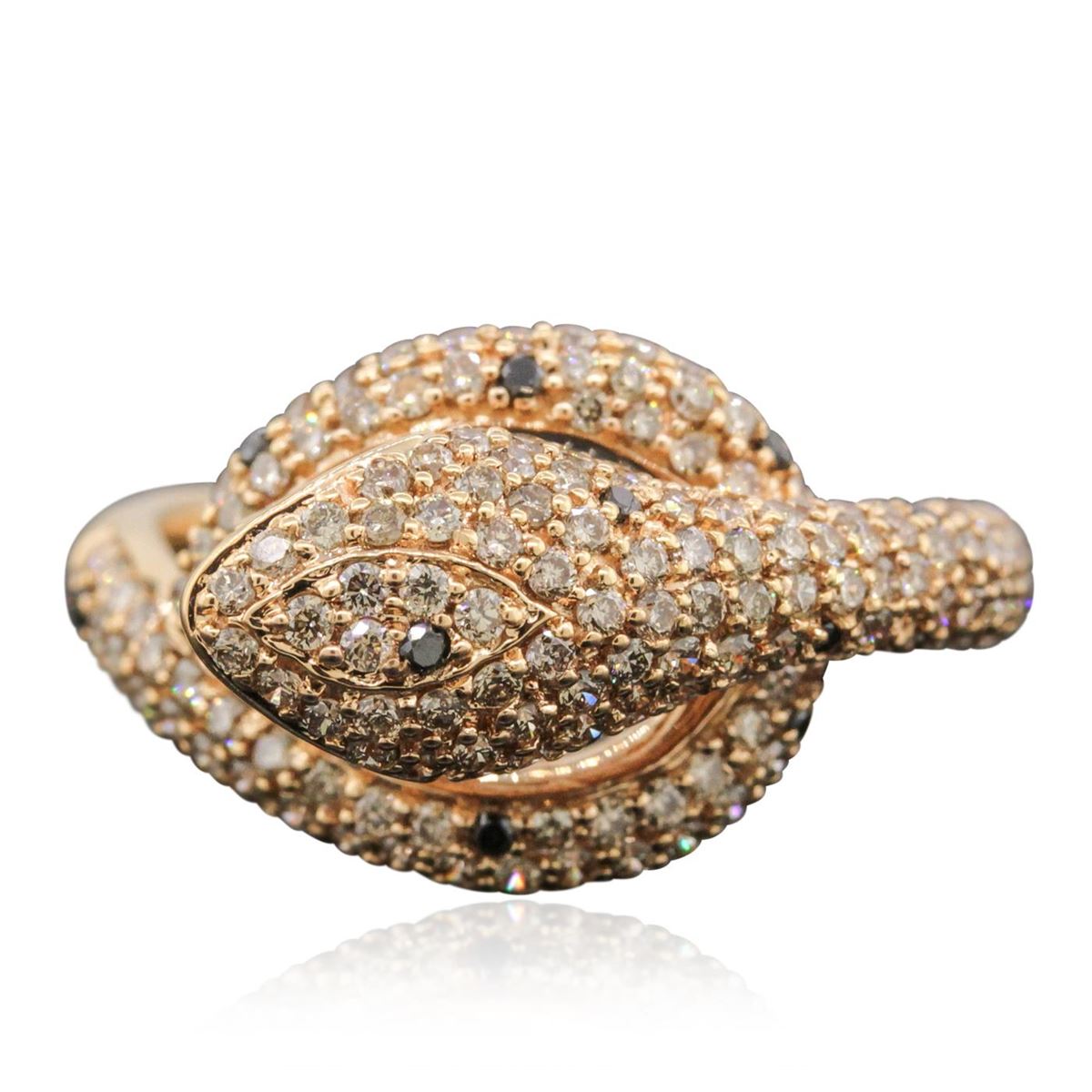 One Ring featuring: 18KT Rose Gold with a total weight of 5.40 grams, Black Diamond with a total weight of 0.08ct, and Diamonds with a total weight of 1.18ctw.