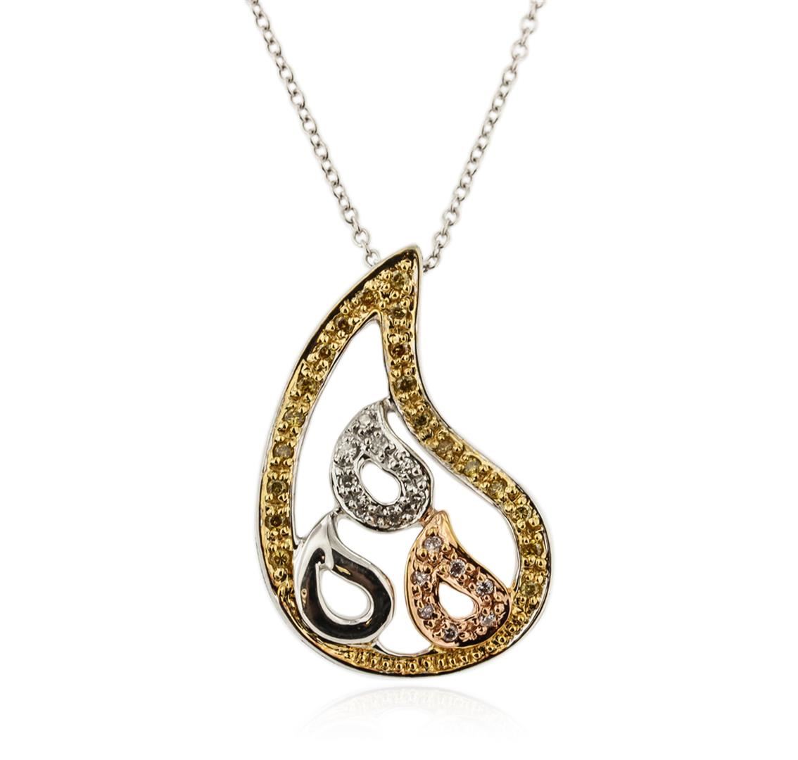 One pendant with chain featuring: 18KT tri color gold weighing 4.20 grams containing diamonds with a total weight of 0.20ct.