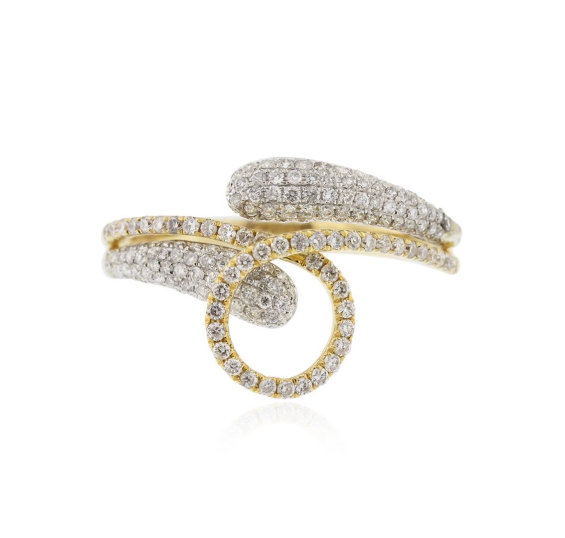 One ring featuring: 18KT yellow and white gold weighing 3.69 grams containing pave set round cut diamonds weighing a total of 0.65ct.