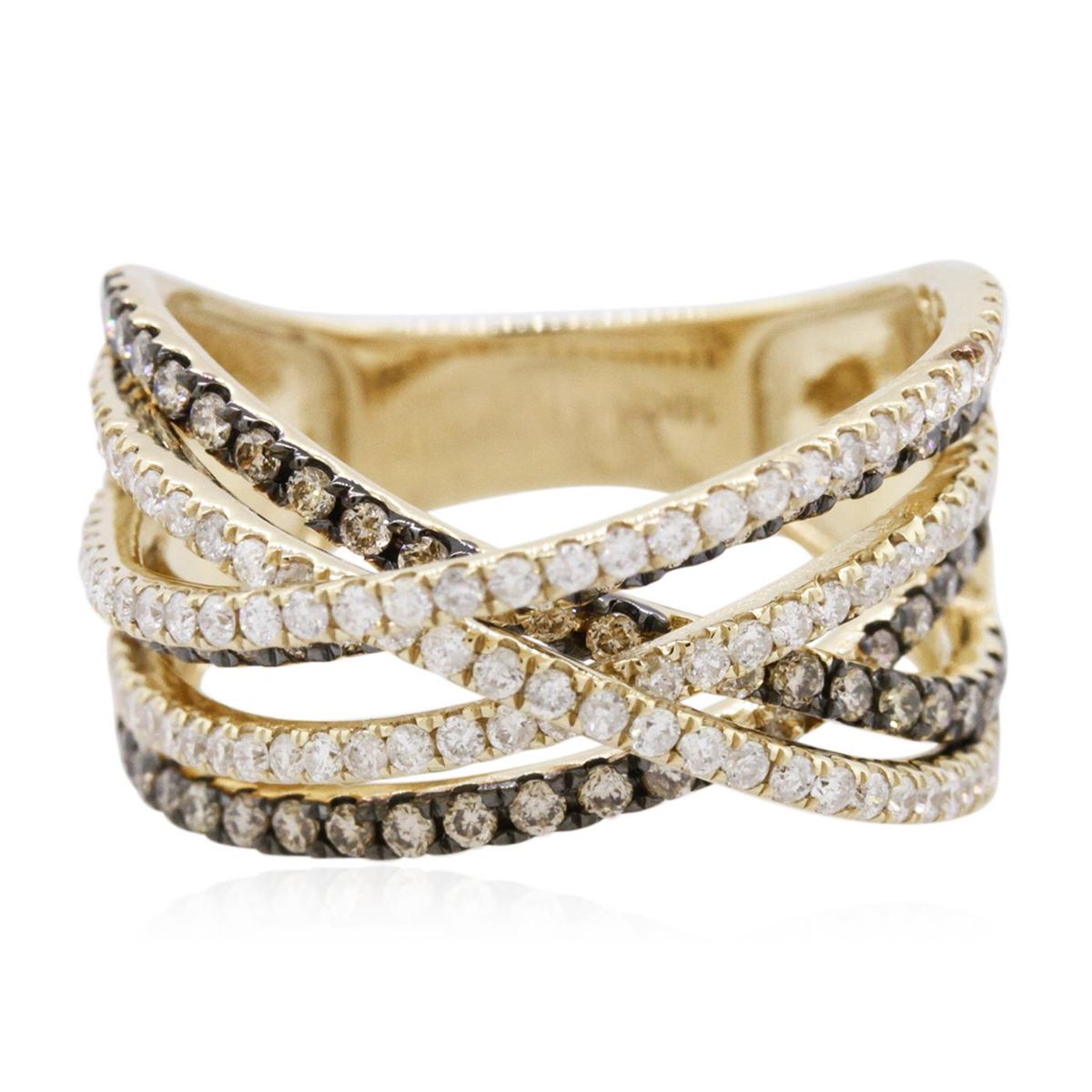 One electronically tested 18KT yellow and black gold ladies combination cast & assembled diamond ring with a bright polish finish. Identified with markings of "14K". Condition is new. Containing: Ninety-Nine prong set round brilliant cut diamonds, measuring 1.20 - 1.20 x 0.72mm (depth est.) approximate total weight of 99 Stones = 0.62ct. Clarity: I-1. Color: I - J, Cut is Good. Sixty-Five prong set round brilliant cut diamonds, measuring 1.30 - 1.30 x 0.78mm (depth est.) approximate total weight of 65 Stones = 0.52ct. Clarity: SI-2 to I-1, Cut is Good. All diamonds are graded in the mounting, unless otherwise stated. Total Weight of Diamonds 1.14ct. Total Weight of Ring 5.70 grams. GGL Appraised at $4,085.00.