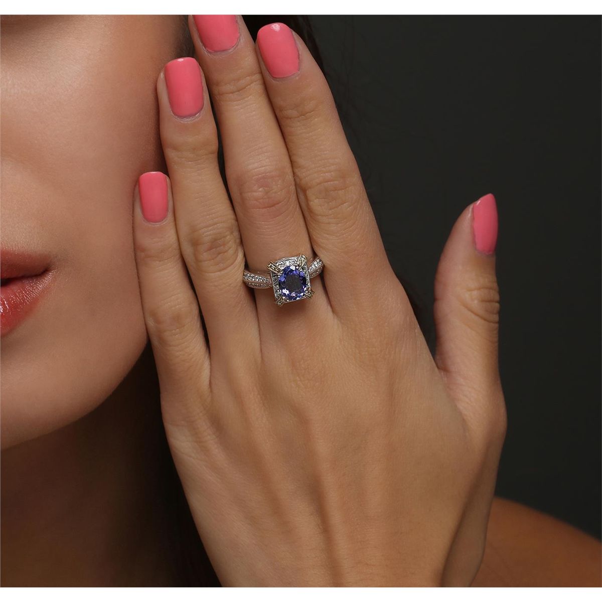 One ring featuring: 18KT two-tone gold with a total weight of 9.00 grams, tanzanite with a total weight of 1.69ct, and diamonds with a total weight of 0.74ctw.