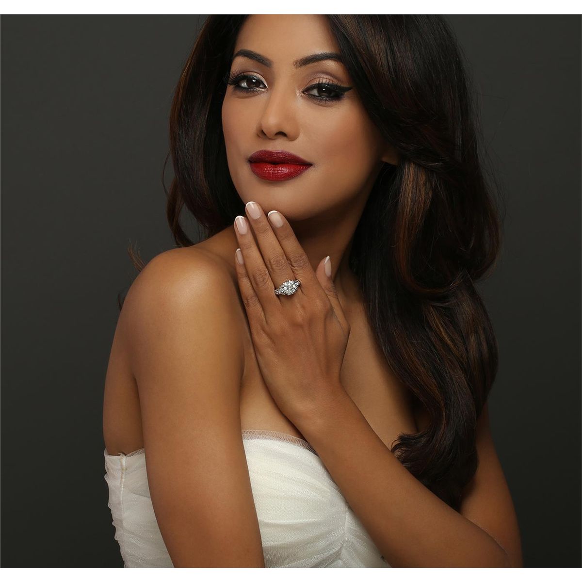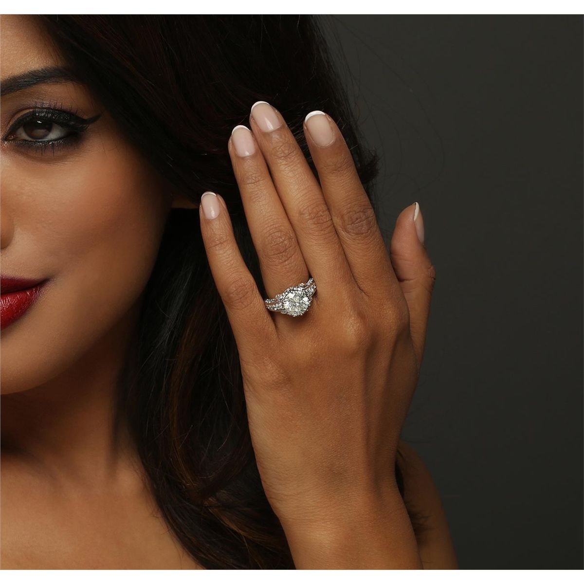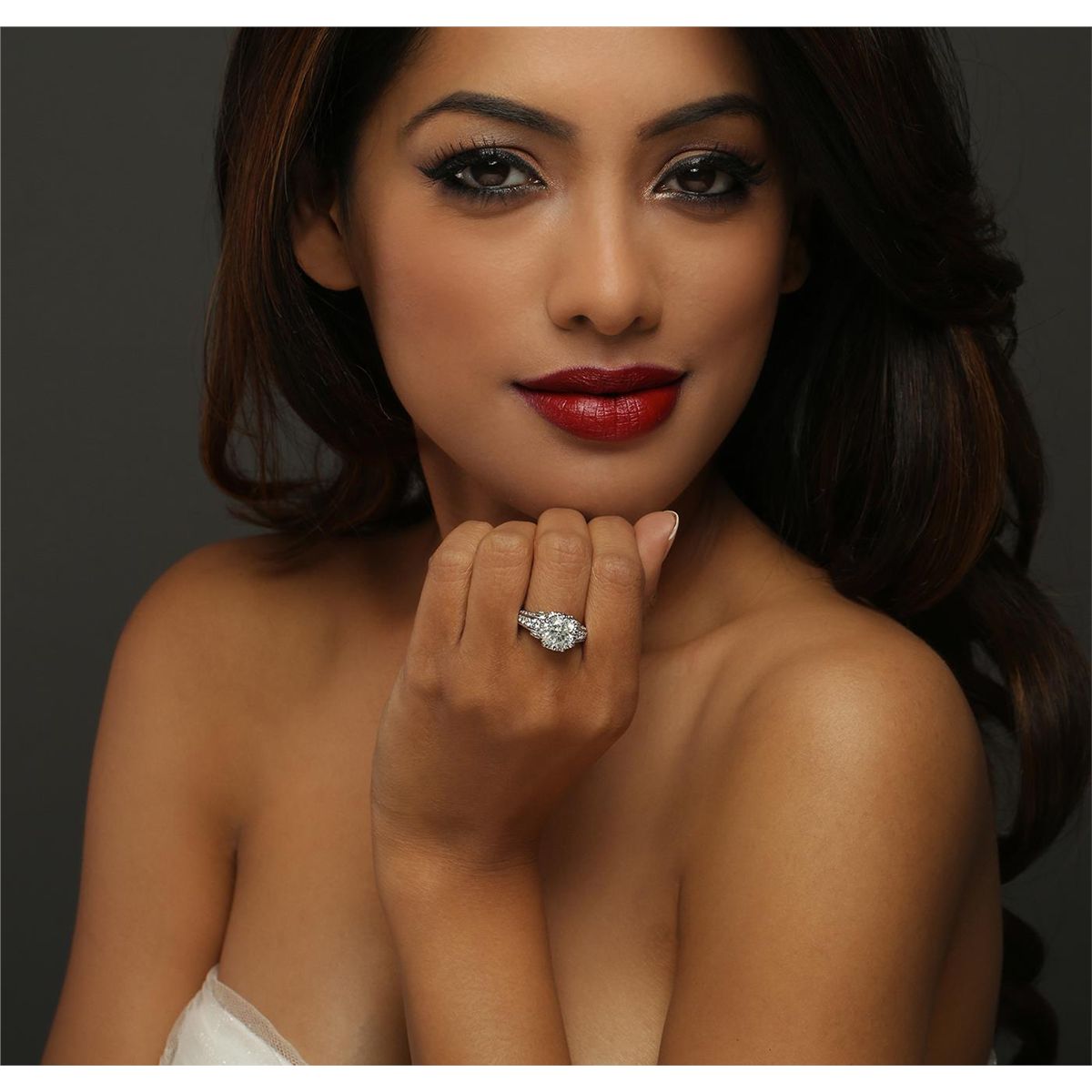 One electronically tested 18KT white and yellow gold ladies combination cast & assembled engagement ring with a flat shank with a bright polish finish. Identified with markings of "18K". Condition is new. Containing: One prong set round brilliant cut diamond, measuring 9.50 - 9.50 x 5.60mm (depth est.) approximate weight of 3.08ct. Clarity: I-3. Color: H, Cut is Good. Sixty prong set round brilliant cut diamonds, measuring 3.00 - 1.60 x 1.38mm (depth est.) approximate total weight of 60 Stones = 1.80ct. Clarity: SI-1. Color: H, Cut is Good. Four gypsy set round brilliant cut diamonds, measuring 2.00 - 2.00 x 1.20mm (depth est.) approximate total weight of 4 Stones = 0.12ct. Clarity: SI-1. Color: J, Cut is Good. Six prong set round brilliant cut diamonds, measuring 1.10 - 1.10 x 0.66mm (depth est.) approximate total weight of 6 Stones = 0.03ct. Clarity: I-1. Color: J, Cut is Good. All diamonds are graded in the mounting, unless otherwise stated. Total Weight of Diamonds 5.03ct. Total Weight of Ring 8.20 grams. GGL Appraised at $30,775.00.