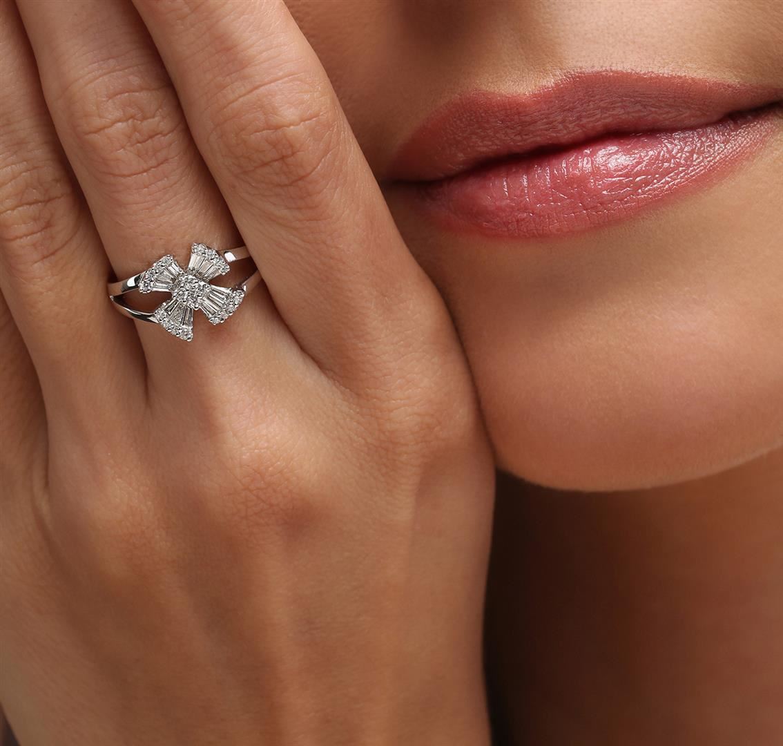 One ring featuring: 18KT white gold weighing 3.90 grams containing prong set round diamonds and channel set baguette cut diamonds with a total weight of 0.20ct.