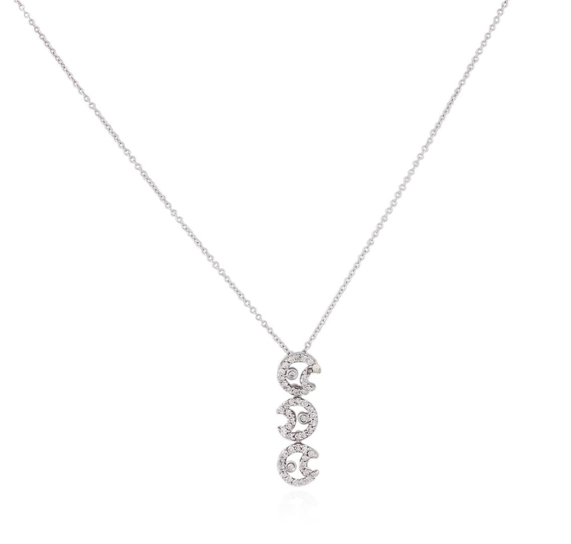 One pendant with chain featuring: 18KT white gold weighing 3.30 grams containing diamonds with a total weight of 0.30ct.
