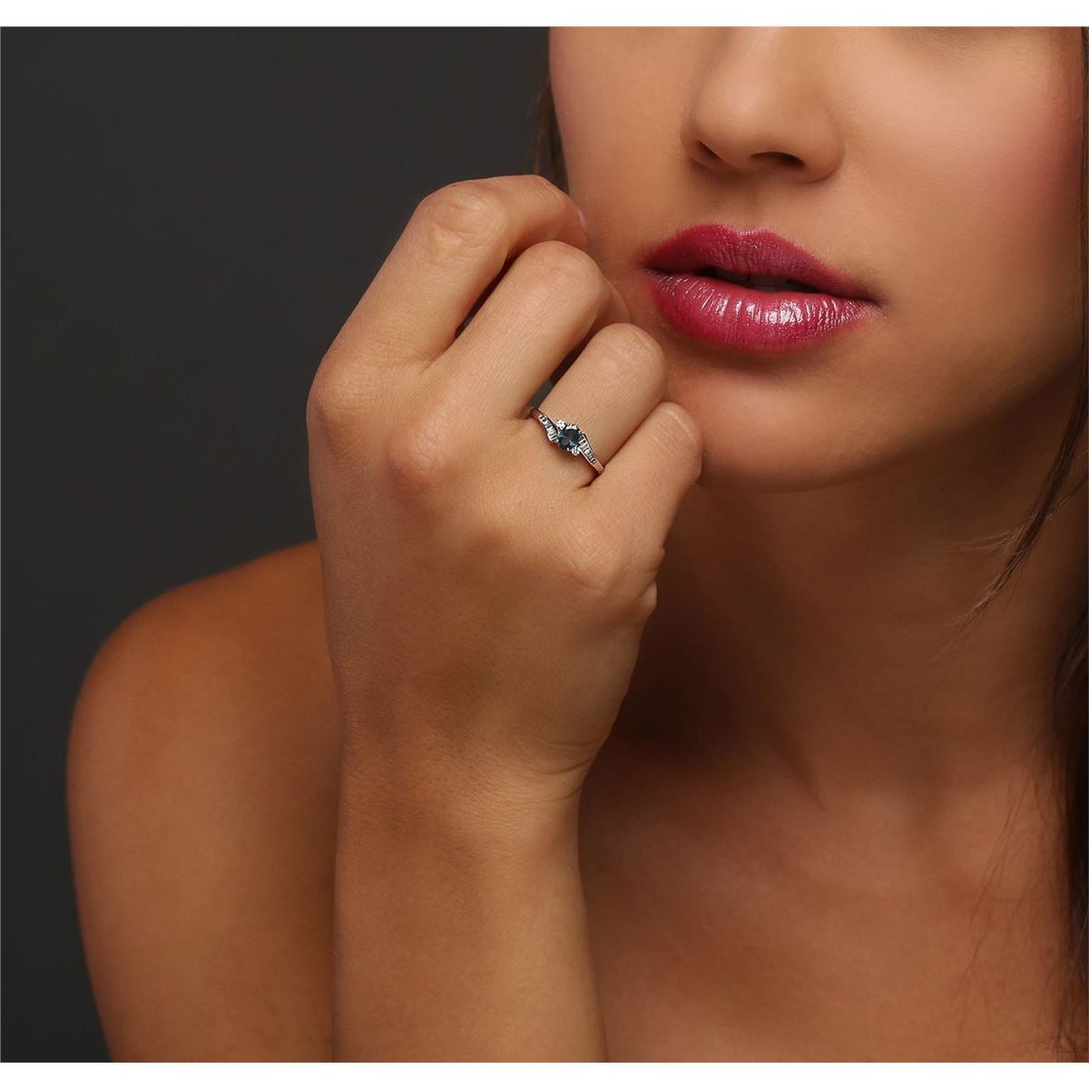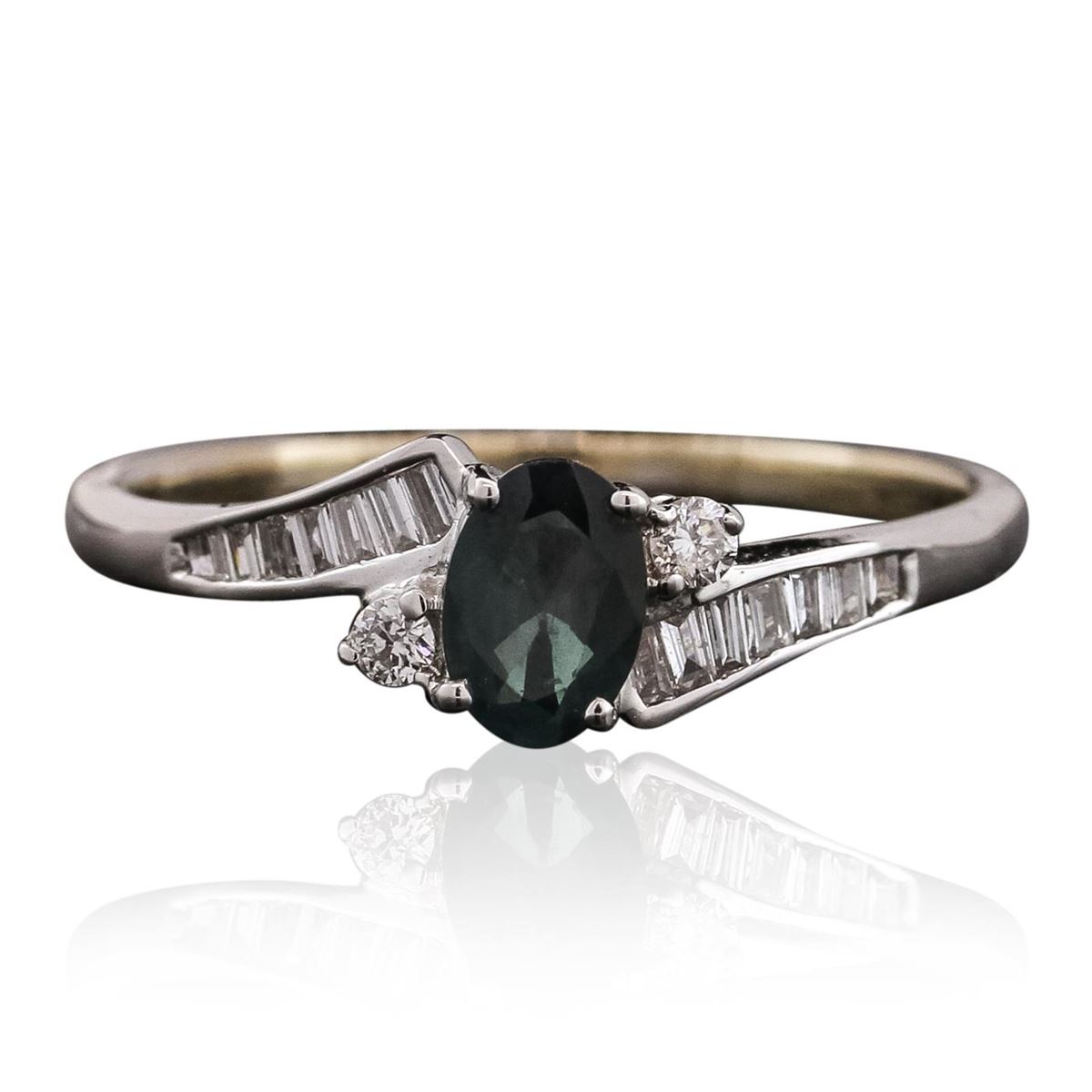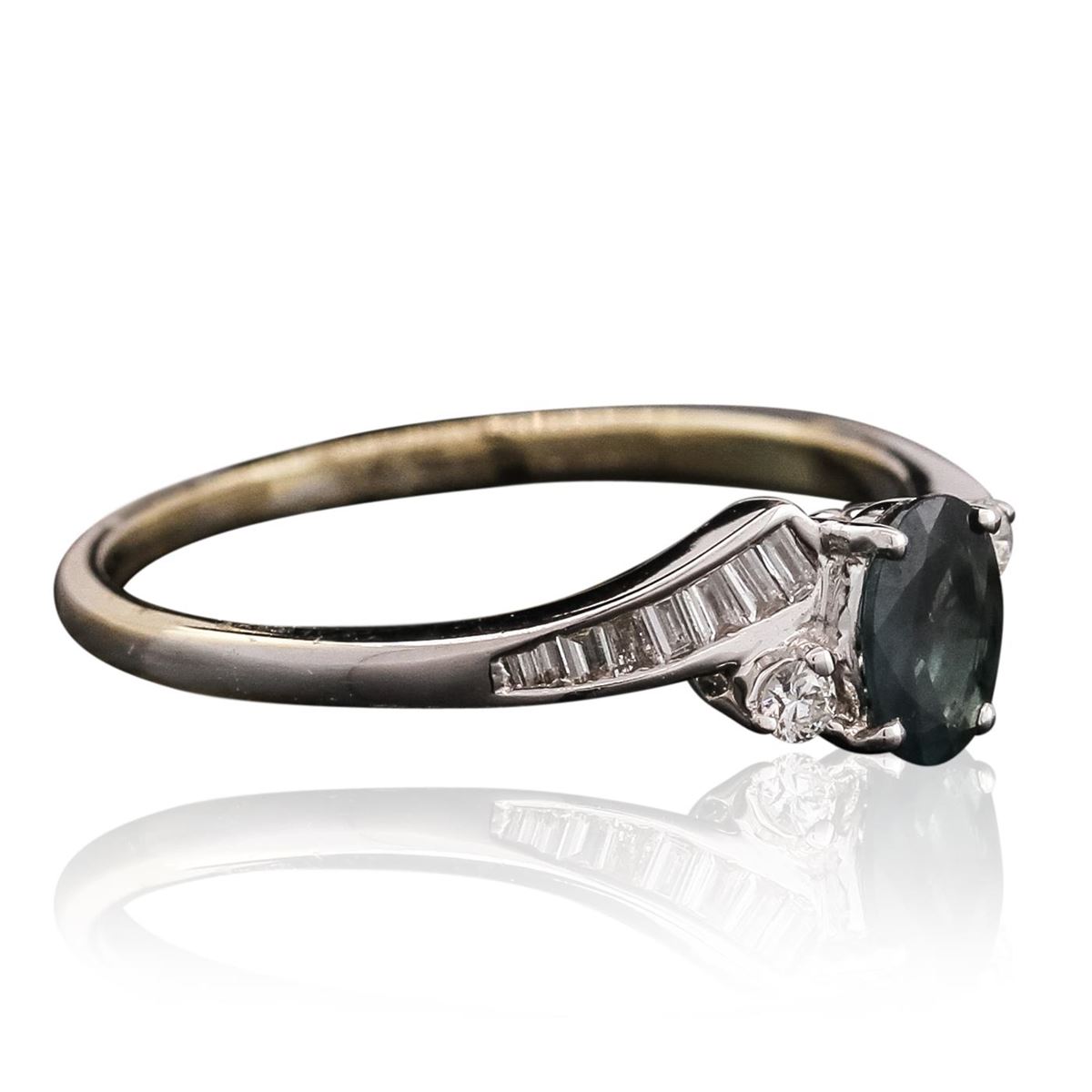 One ring featuring: 18KT white gold weighing 2.24 grams containing one alexandrite with a total weight of 0.38cts, two round cut diamonds with a total weight of 0.04cts, and 20 baguette cut diamonds with a total weight of 0.19cts.