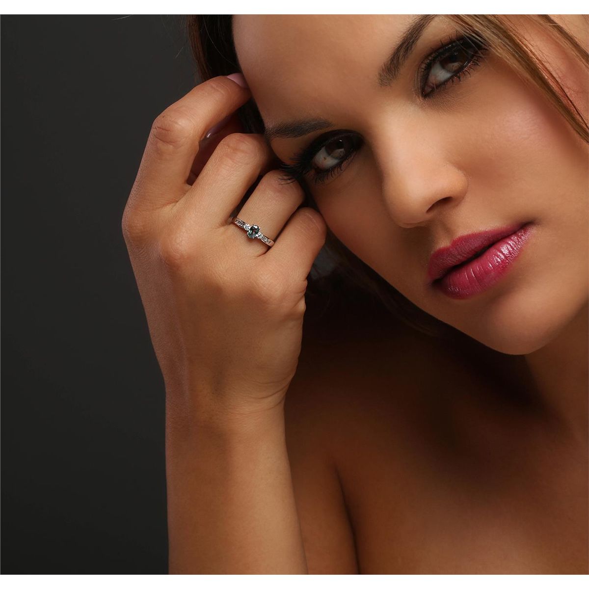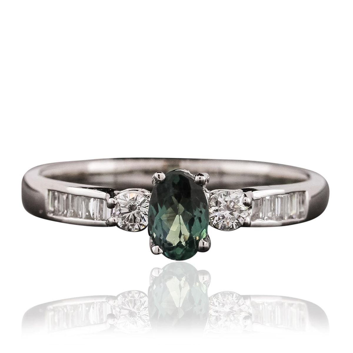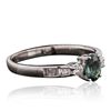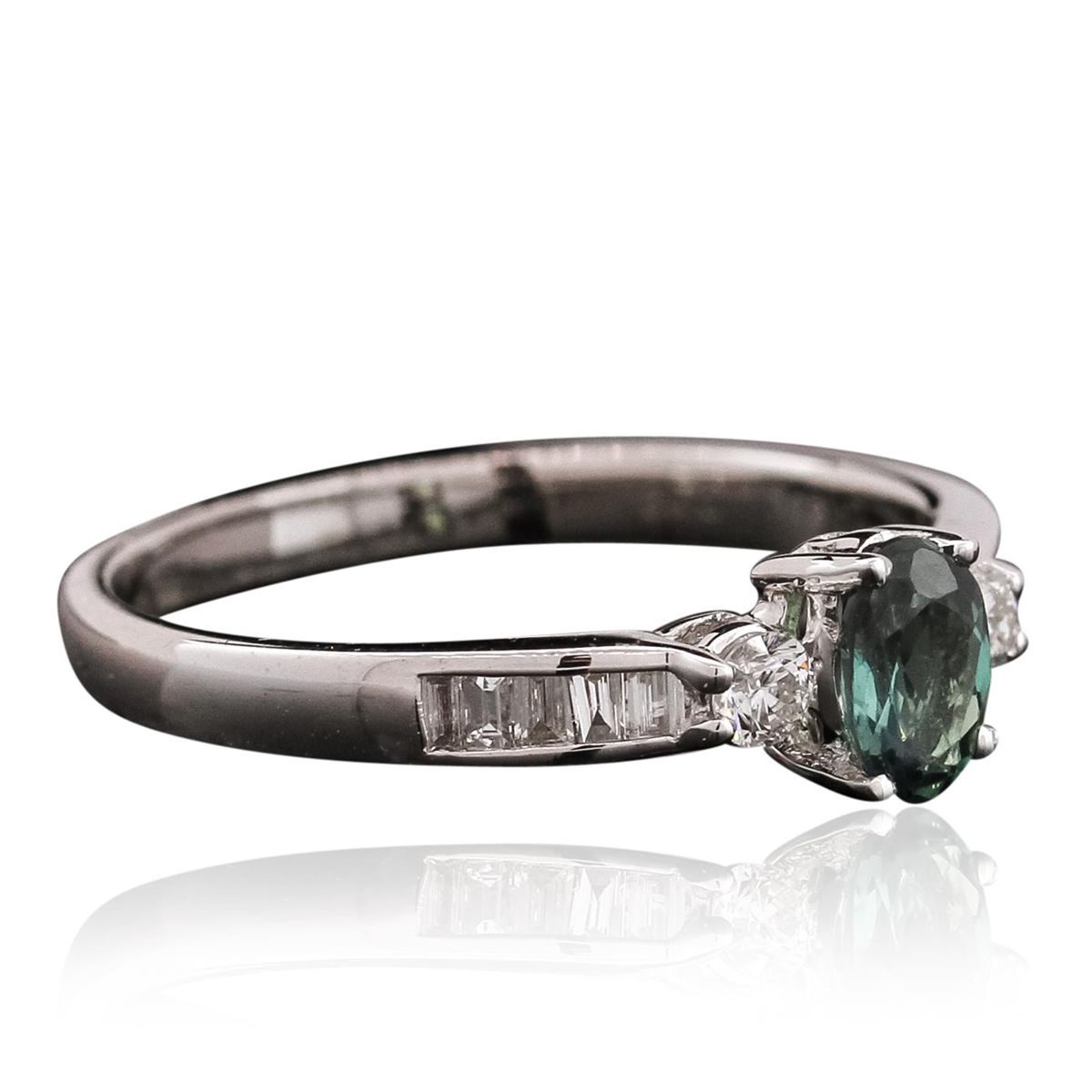 One ring featuring: 18KT white gold weighing 2.05 grams containing one alexandrite with a total weight of 0.46cts, two round cut diamonds with a total weight of 0.13cts, and eight baguette cut diamonds with a total weight of 0.11cts.