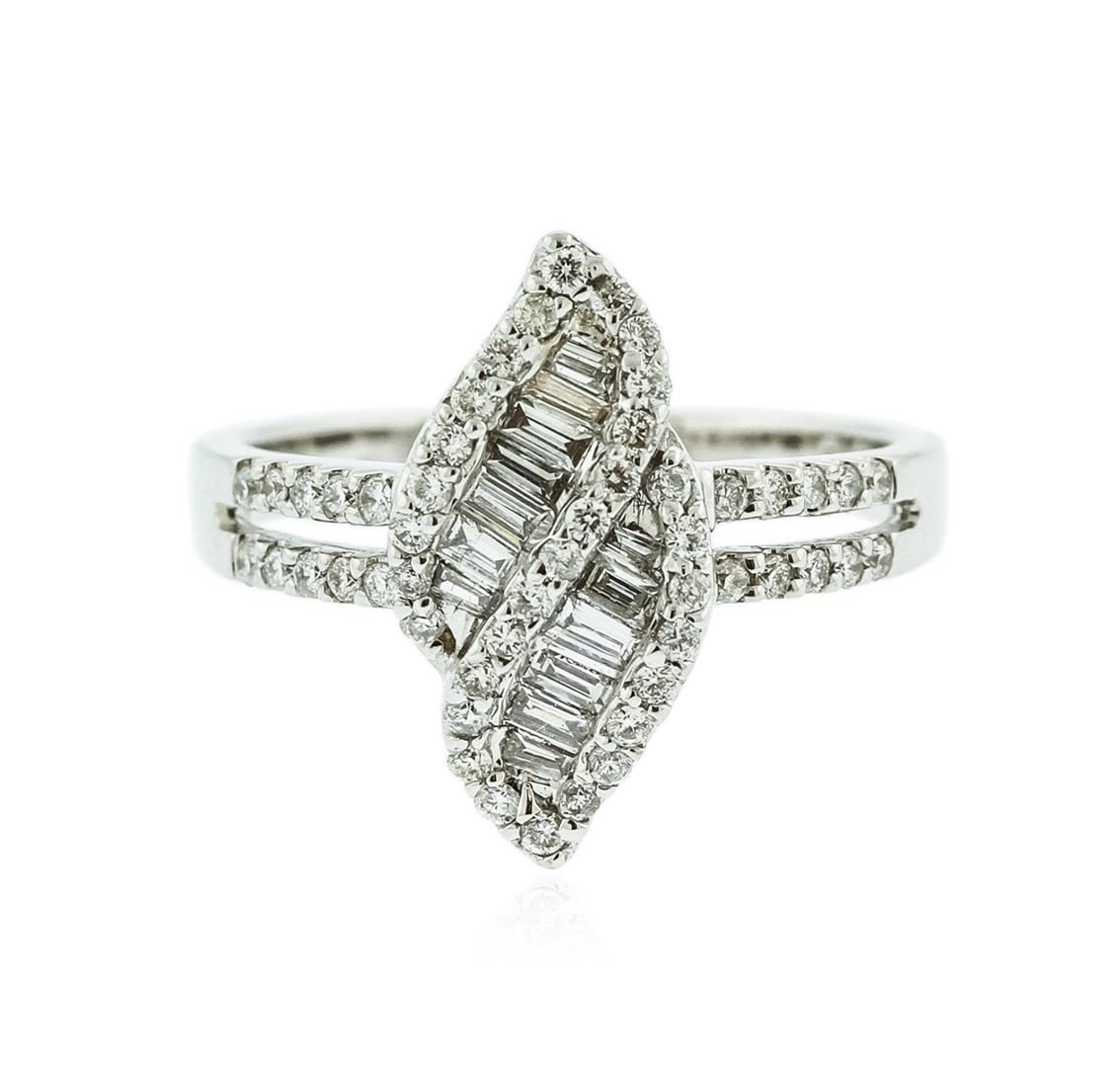 One ring featuring: 18KT white gold weighing 4.70 grams containing diamonds with a total weight of 0.58ct.