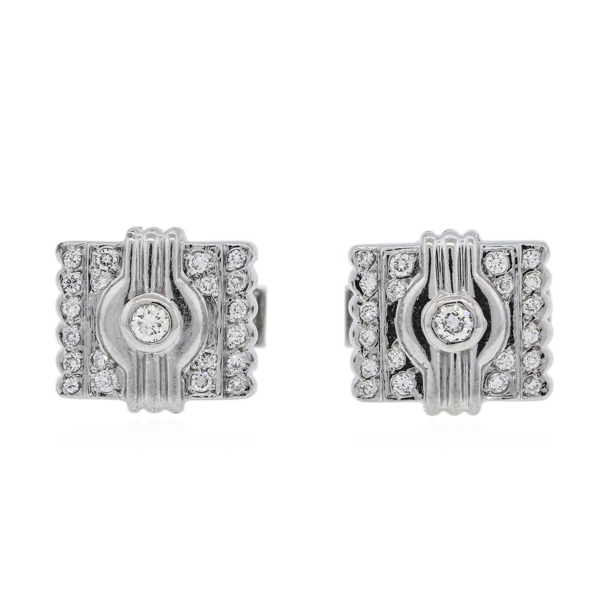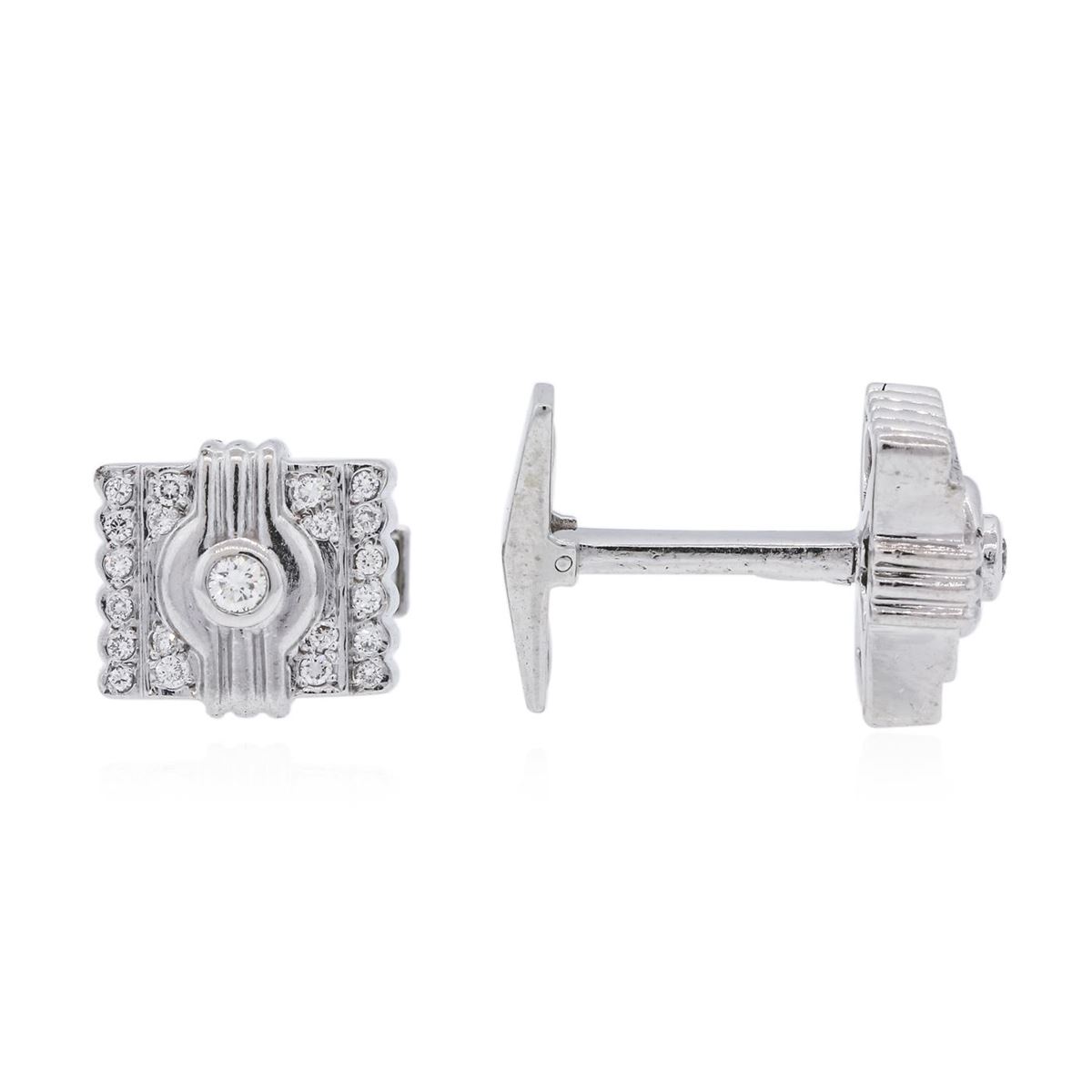 One pair of cufflinks featuring: 18KT white gold weighing 15.10 grams containing pave and bezel set round diamonds with a total weight of 0.60ct.