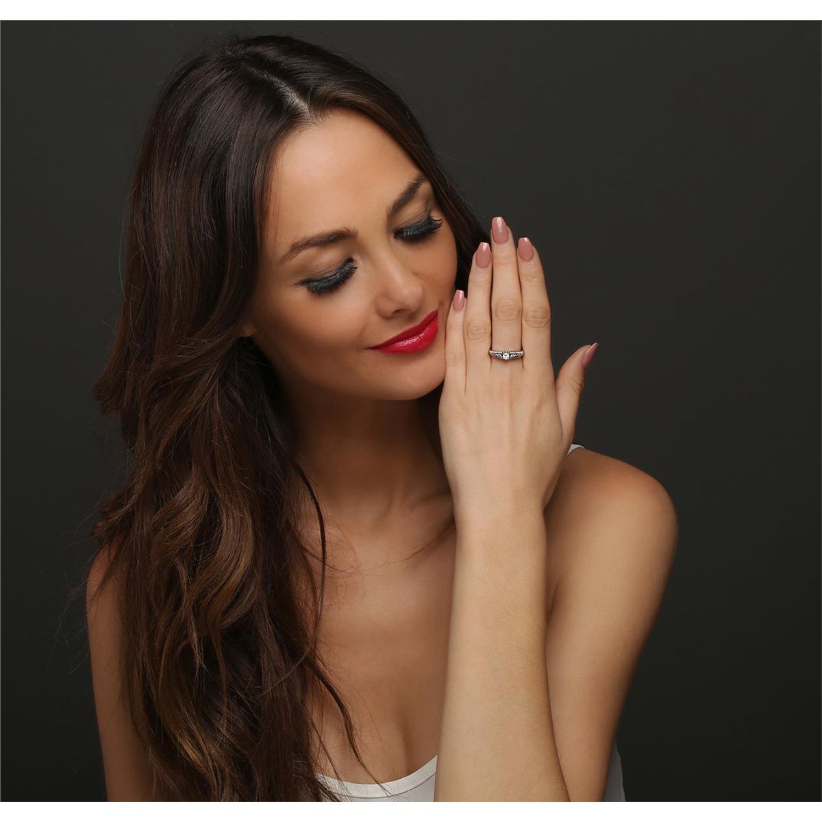 One ring featuring: 18KT white gold weighing 5 grams containing one center diamond and 50 brilliant cut diamonds for a total weight of 0.62cts. .