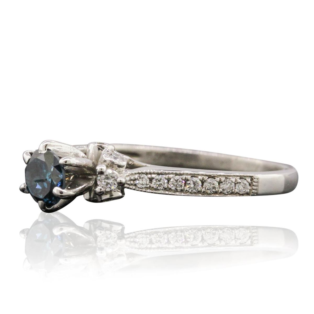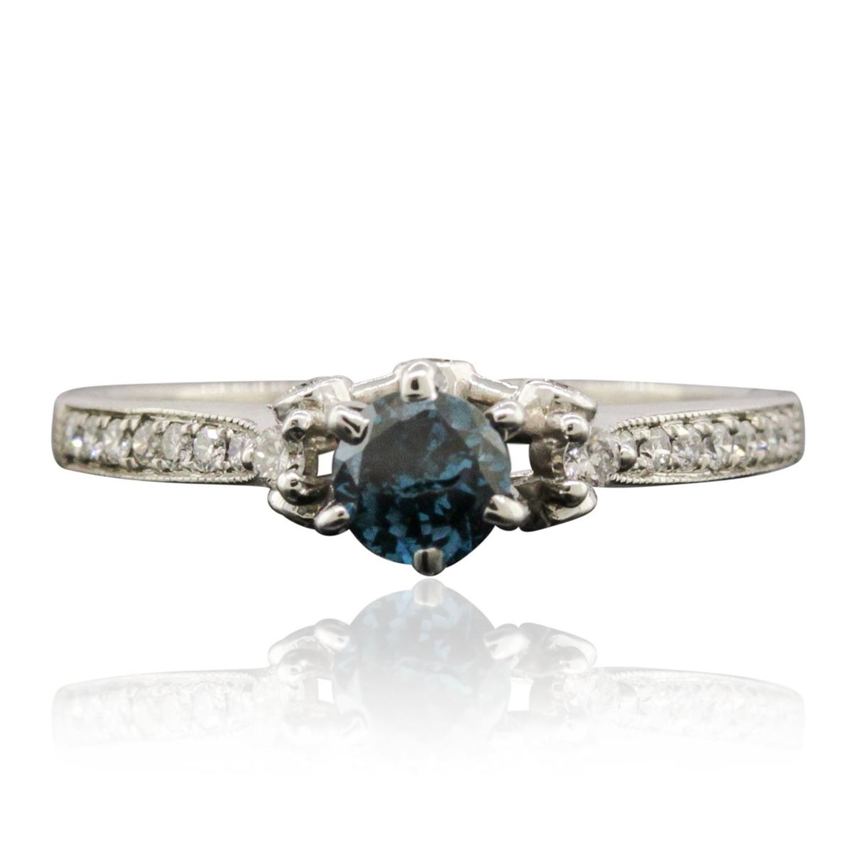 One ring featuring: 3.90 grams of 18KT white gold, (1) blue diamond with a total weight of 0.40ct, (22) round cut diamonds with a total weight of 0.23cts.